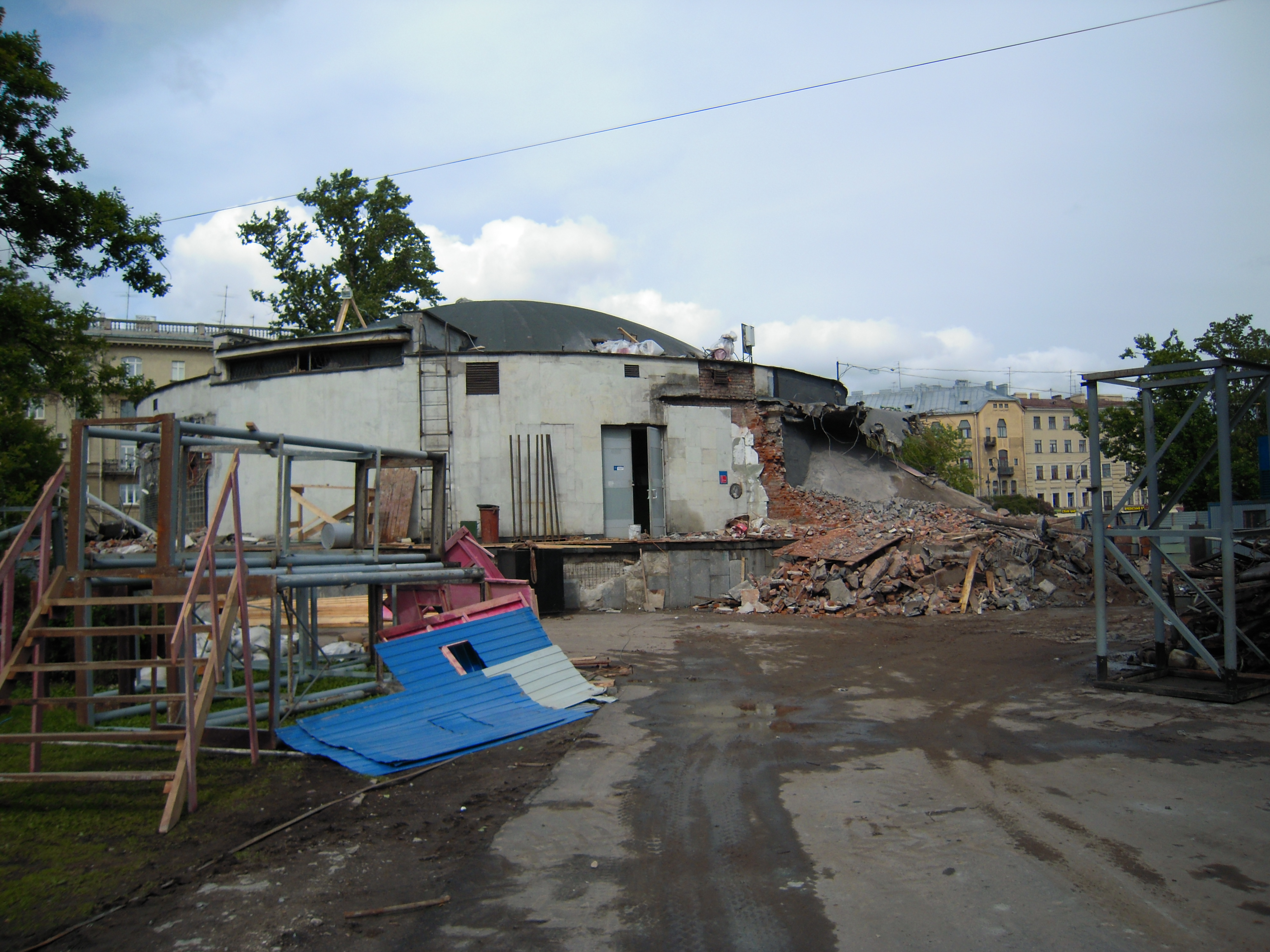 Только что сломали купол вестибюля.