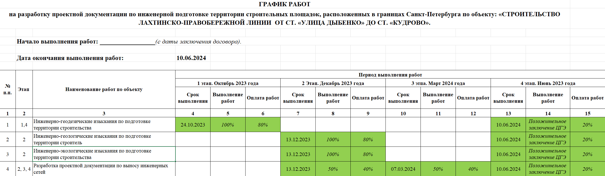 Выполнение работ по разработке проектной документации подключения строительных площадок к инженерным сетям на период строительства по объекту: «СТРОИТЕЛЬСТВО ЛАХТИНСКО-ПРАВОБЕРЕЖНОЙ ЛИНИИ ОТ СТ. «УЛИЦА ДЫБЕНКО» ДО СТ. «КУДРОВО»