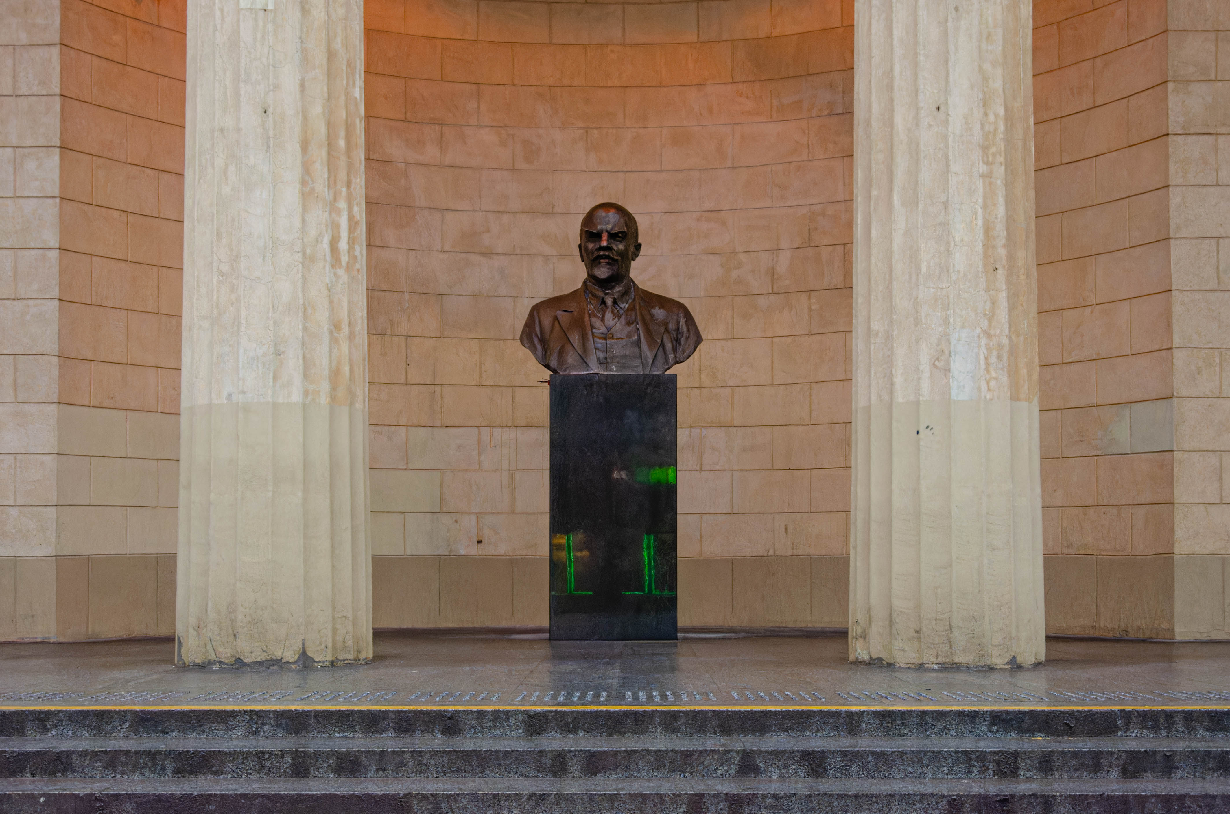 наконец-то зафоткал Ленина на стилобате вестибюля. Вписался он знатно на мой взгляд