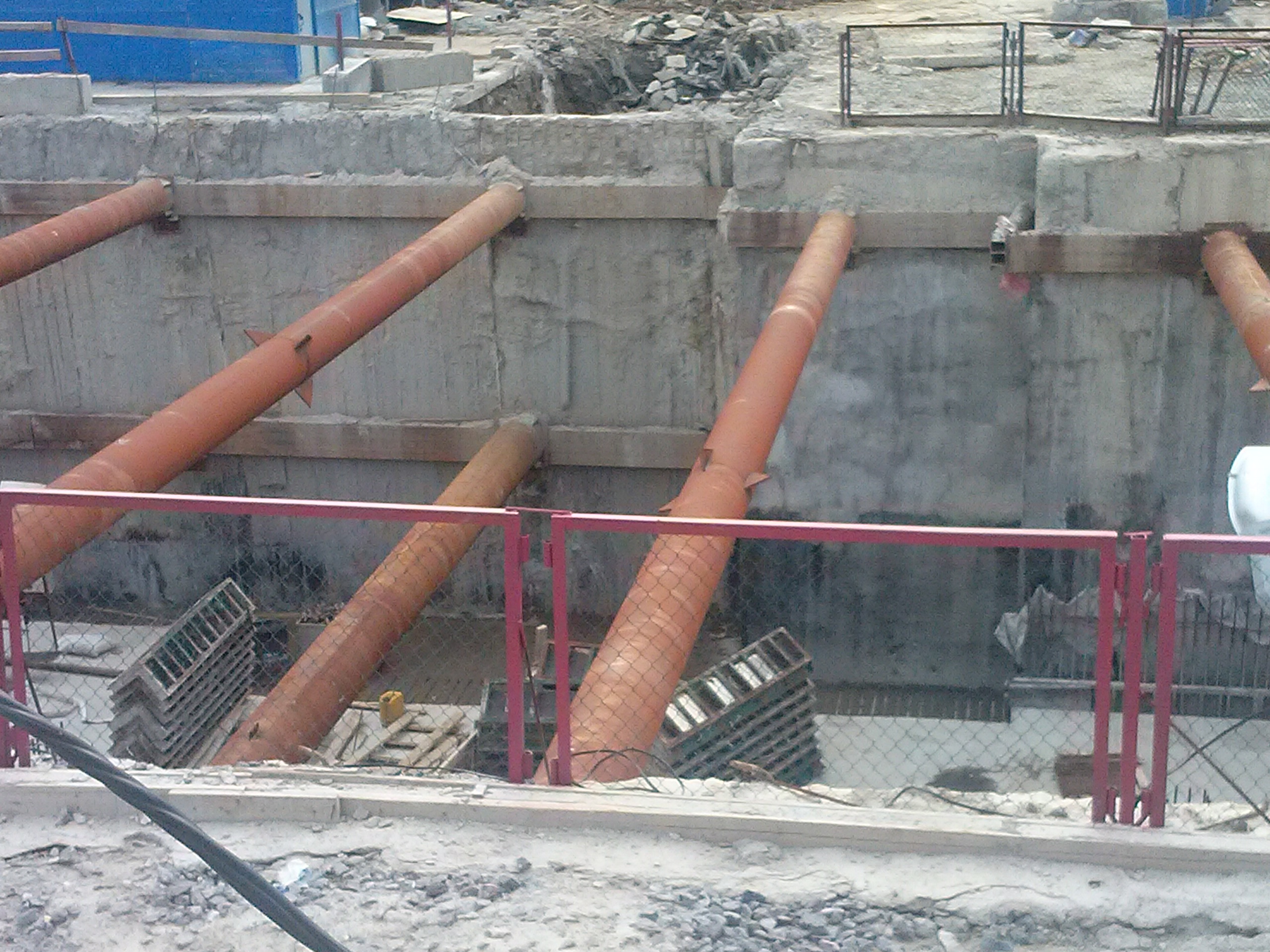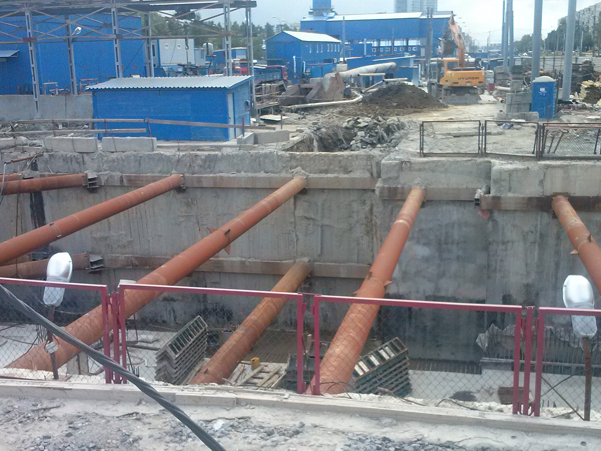 А для полной защиты от протечек существует гидроизоляционный слой, который будет наноситься на стену в грунте перед сооружением основных конструкций вестибюля. Сейчас его ещё нет.
