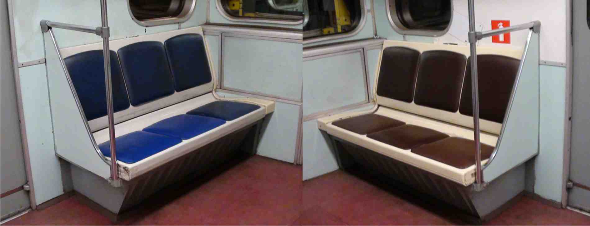 1) "Пришелец" имеет фары чуть выше, чем у номерных, к тому же они ближе друг к другу, потом у "пришельца" их две, правда они не всегда включены. И ещё, нету верхних фар. Таким методом безошибочно определяется тип состава, когда он ещё далеко в тоннеле