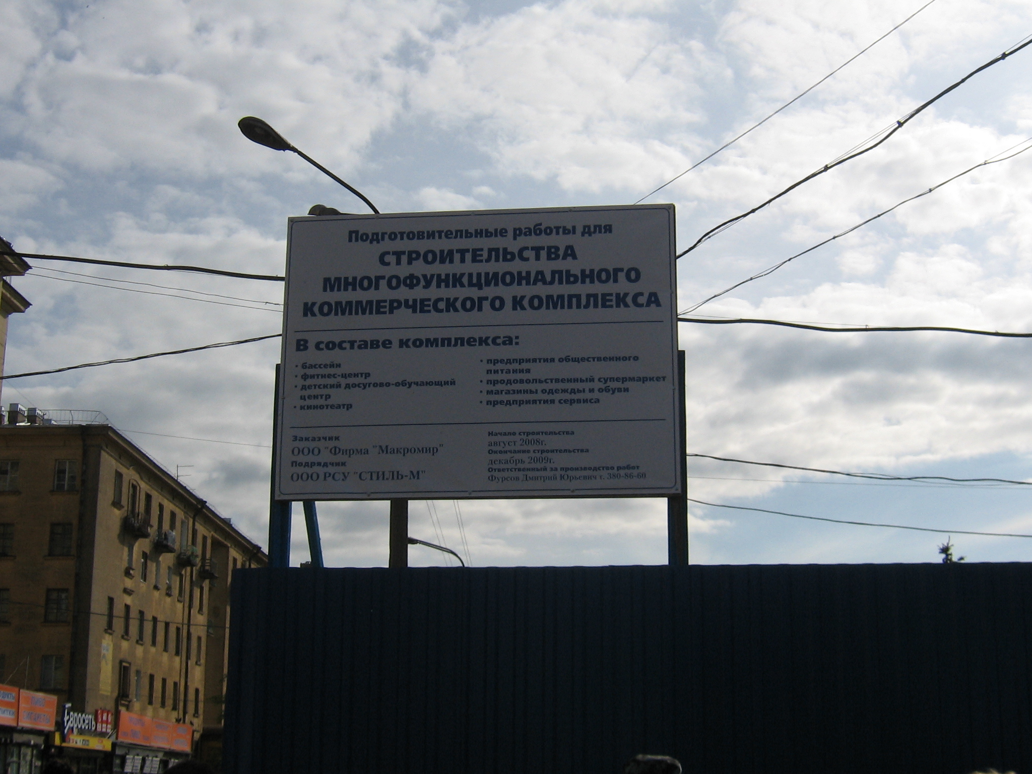 Начало строительства - август 2008, окончание осень 2009 (с трудом верится). Заказчик - Макромир.