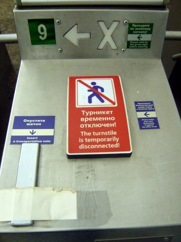 При этом в надписи "Турникет временно отключЁн" сэкономили на точках...