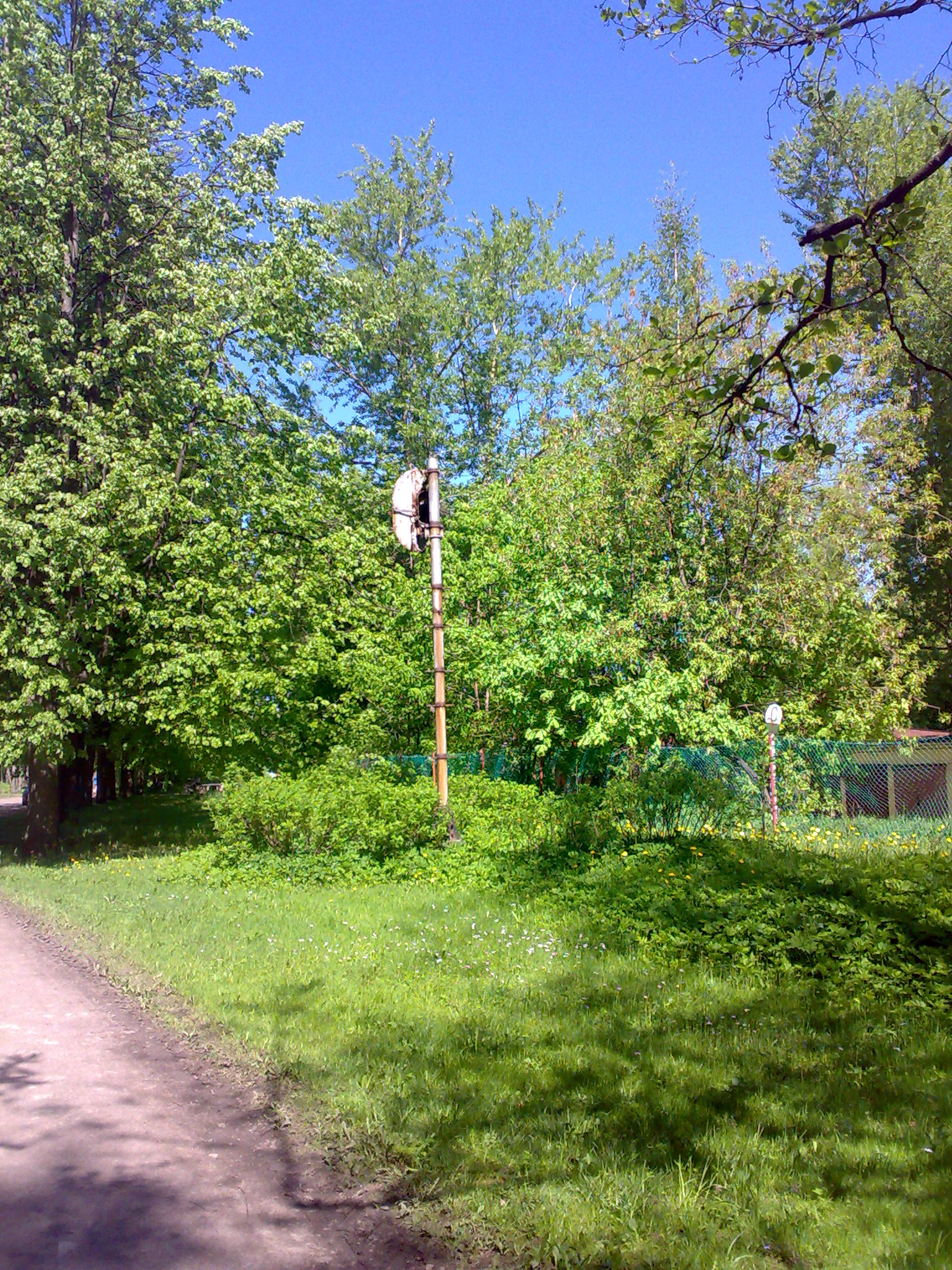 Отойдем назад за переезд. Рельсы тут лежат, и оба светофора видны. Вид туда же.
