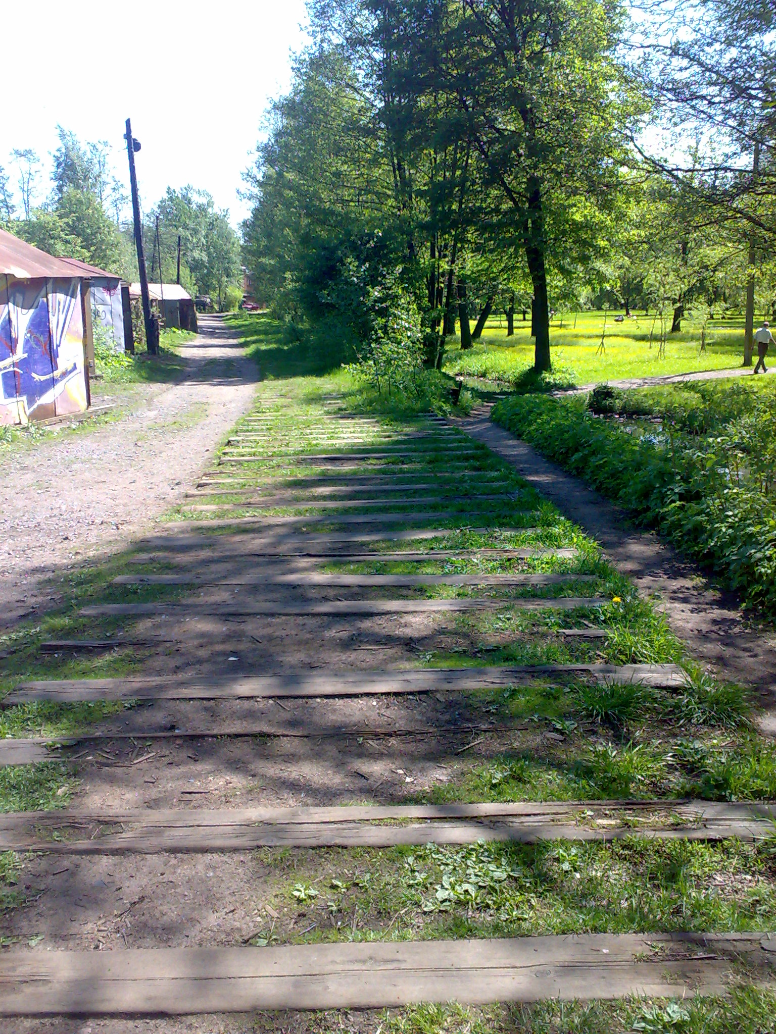 Потом начинается поворот направо. Впереди уже выглядывает забор вдоль путей