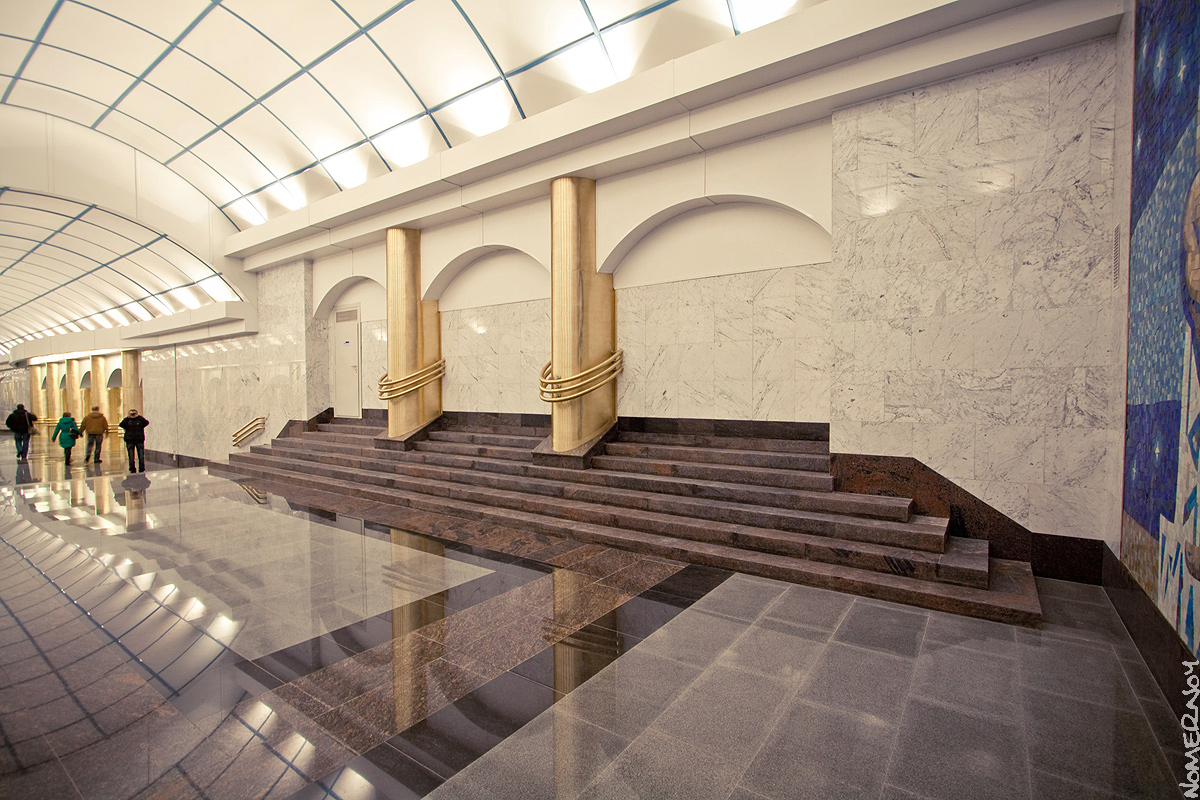 Из недостатков – показался тесноватым вестибюль, хоть он и похож во внутреннем плане на вестибюль Академической, но думаю, здесь пассажиропоток будет поболее. Также перед входом/выходом лишние 4 ступеньки (на Бухарестской одна). Ну и примитивные мозаики в отличие от той же Бухарестской.