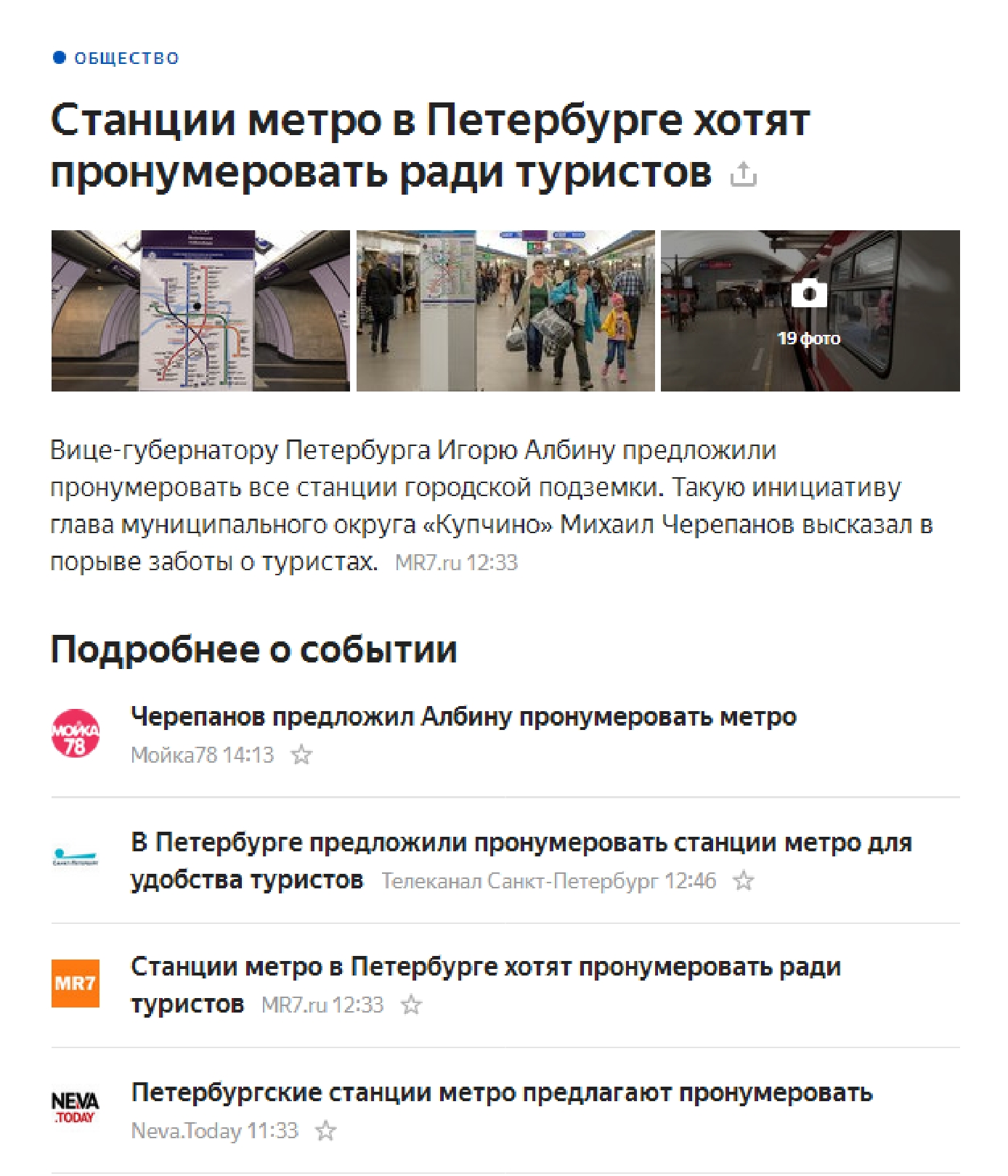 Тем временем, в Яндексе снова новость из серии "В Петербургском метрополитене рассказали, почему...".