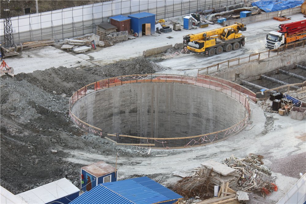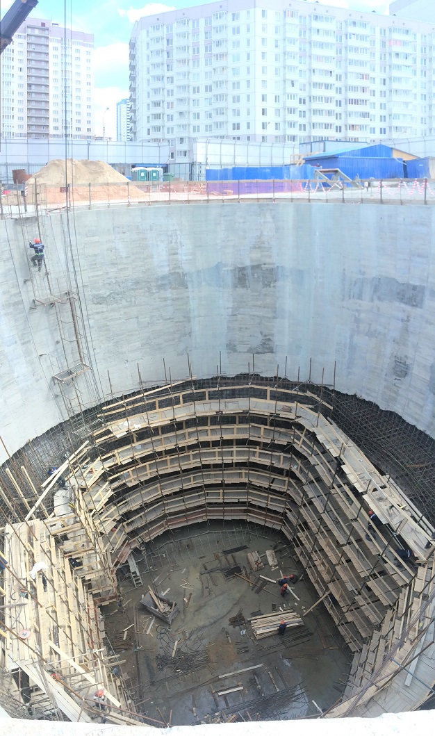 Монтажный котлован откопан на все свои 25 метров, и наполовину забетонирован.
