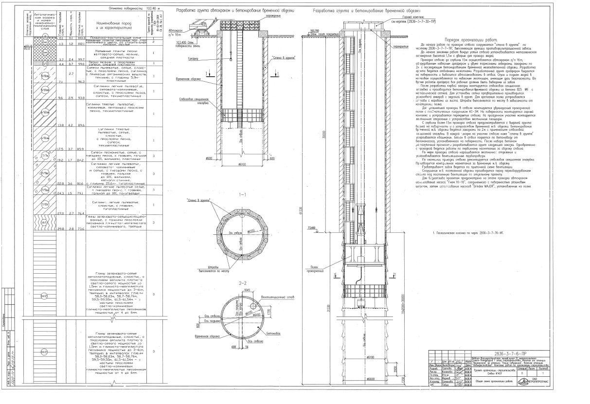 14 колец диаметром 7,9 м - высотой по 0,75 м; 4 кольца диаметром 6 м (зумпф под стволом) - высотой по 1 м.