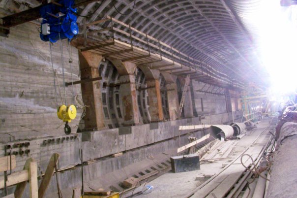 Кстати, забутовка старыми железобетонными тюбингами от разборки пилот-тоннелей или демонтированными тюбингами временного заполнения (например, от разборки боковых тоннелей со стороны среднего зала колонной станции) допускается. Только необходимо соблюдать условие их укладки с последующей проливкой бетона между каждым уложенным рядом.