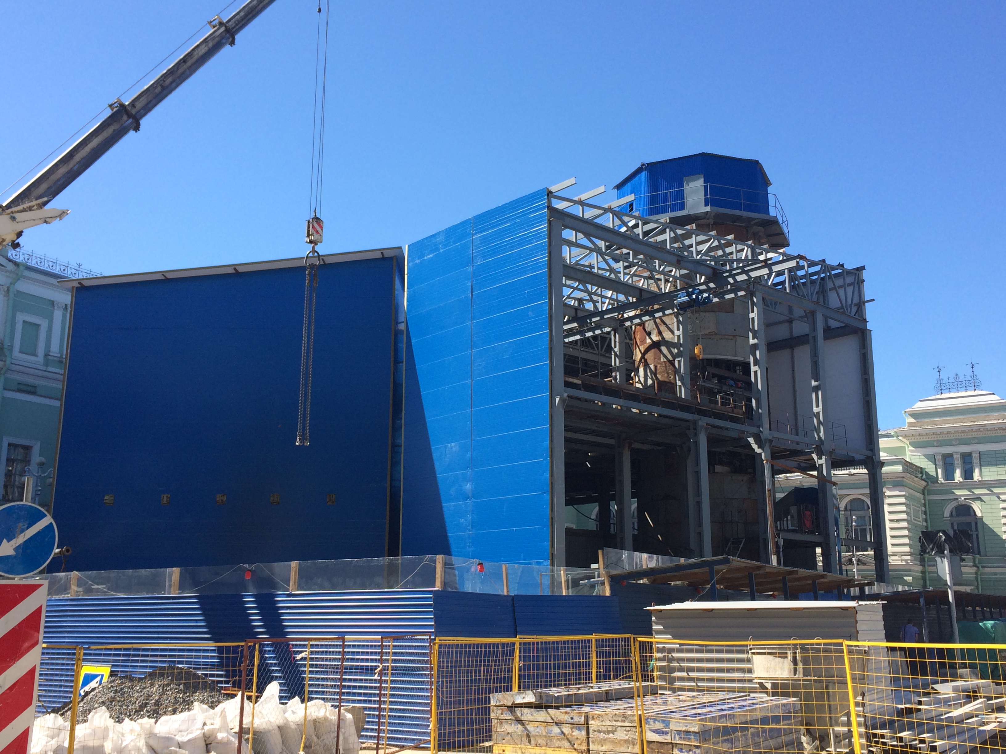 Работы ведутся, но на участке меньшем, чем требуется для комфортного быстрого строительства. Виной тому отсутствие оперативных решений по организации дорожного движения для создания максимально удобных условий для скорейшего выполнения работ Метростроем у здания театра.