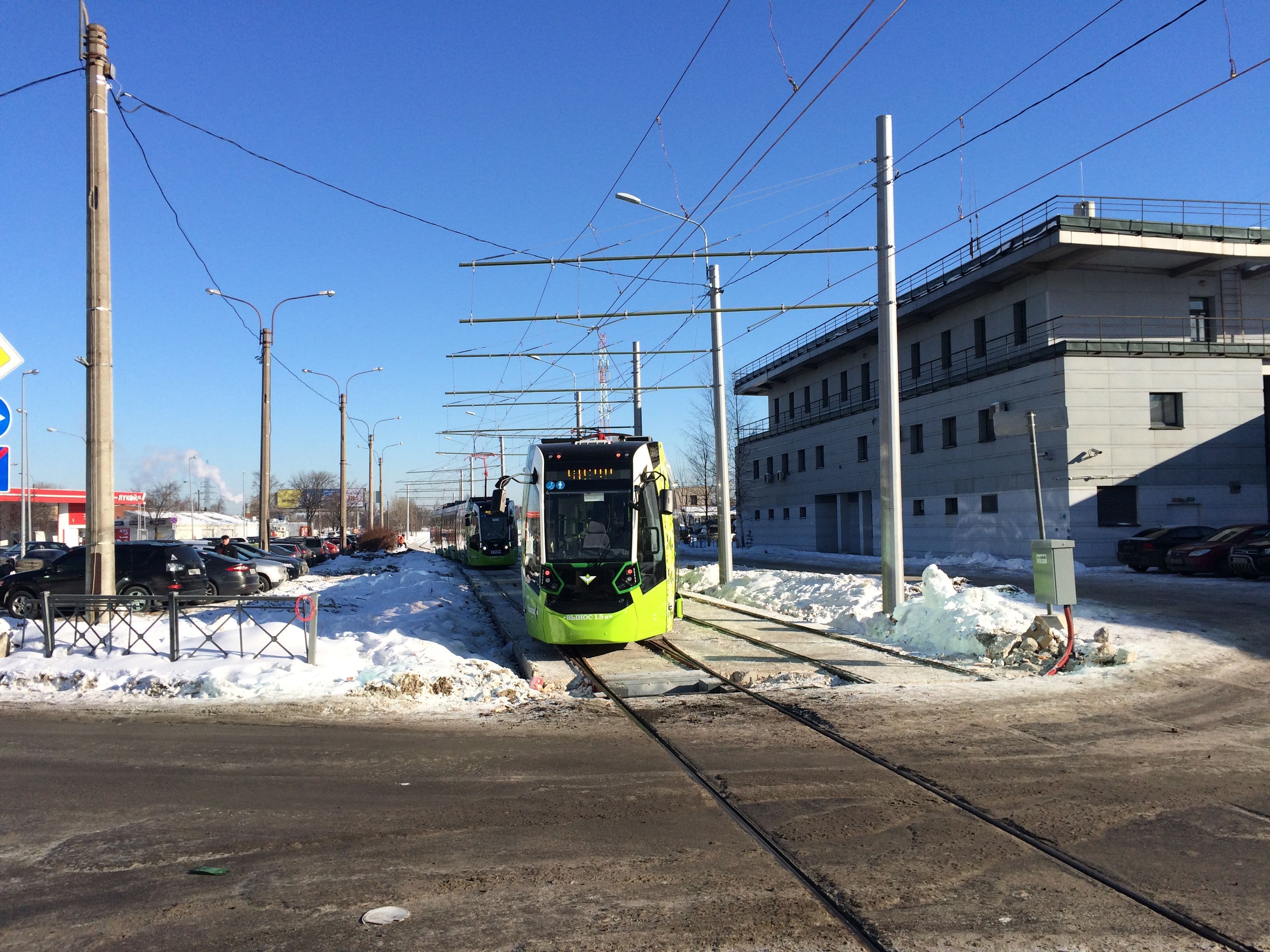 Не на все трамваи ещё нанесли номера. Пока стоял приехал один без номера (по стеклом цифра 7) и один с номером 002.