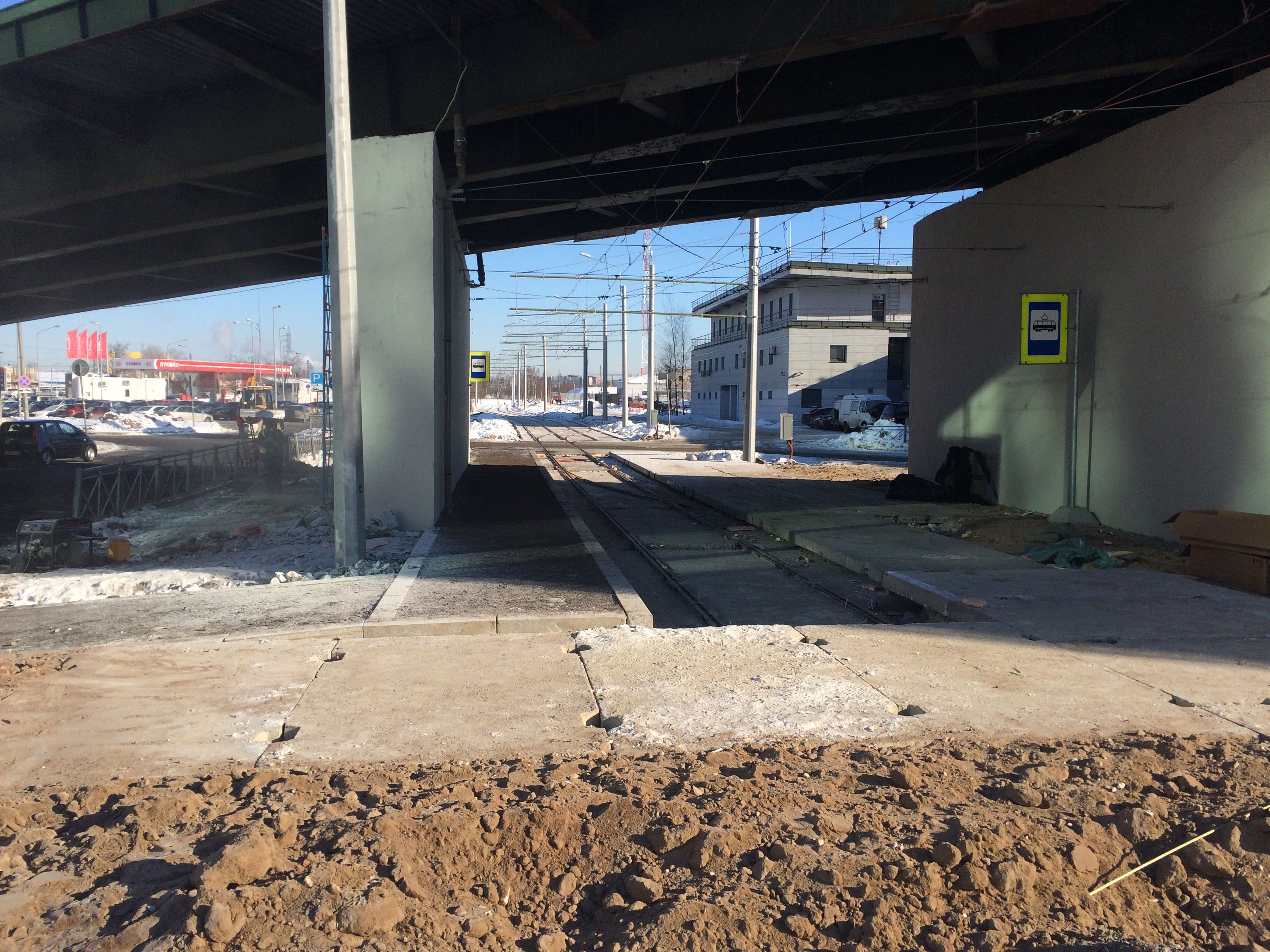 Кстати, если кто не заметил - под плитами временной остановки под виадуком второй съезд, не совсем пока понятно зачем