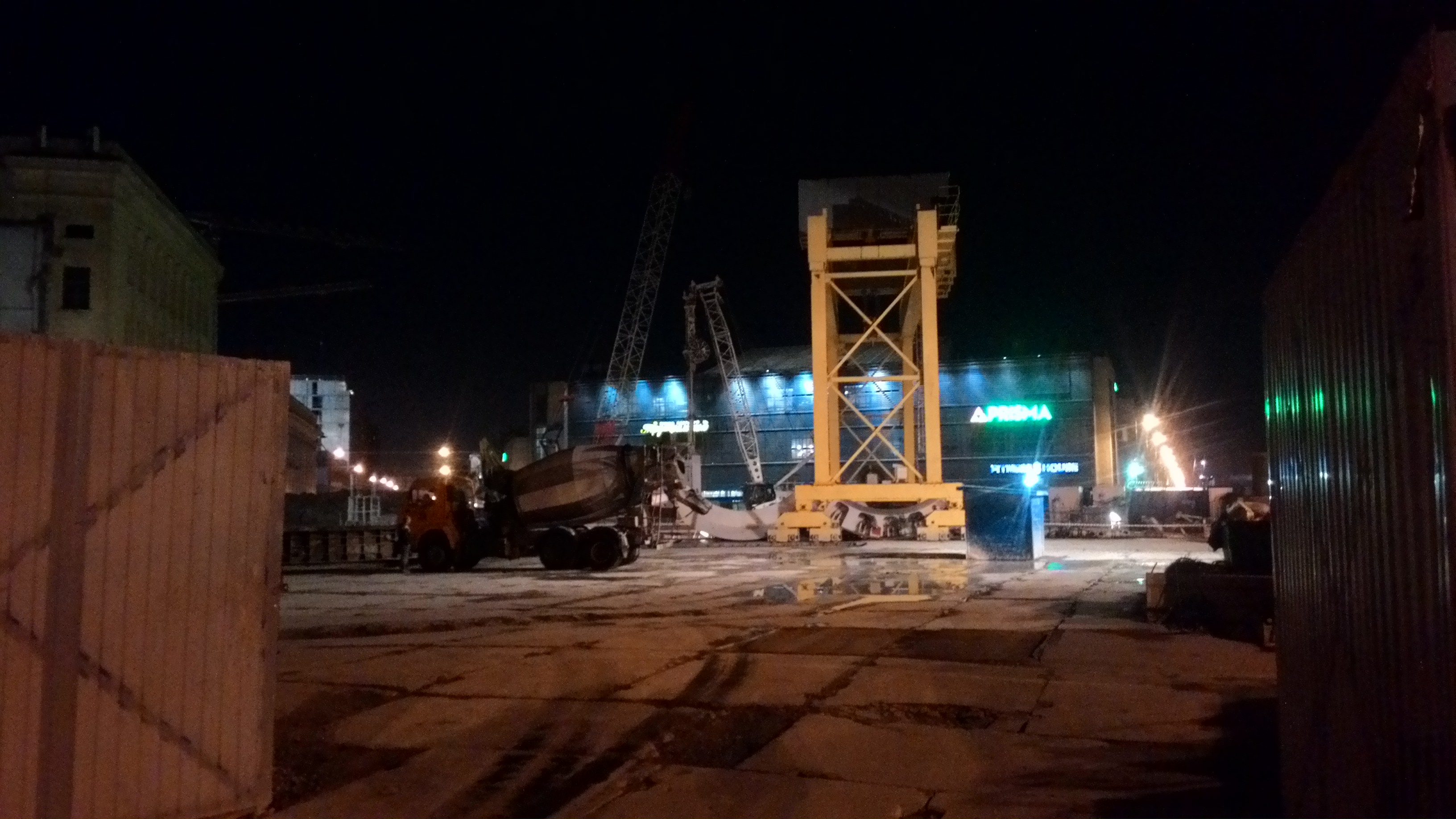 Козловой кран и первые детали щита "Аврора" на Косой линии.
