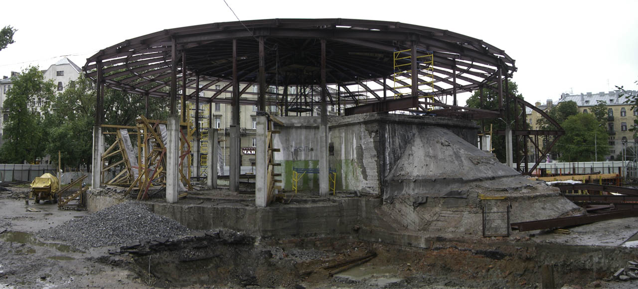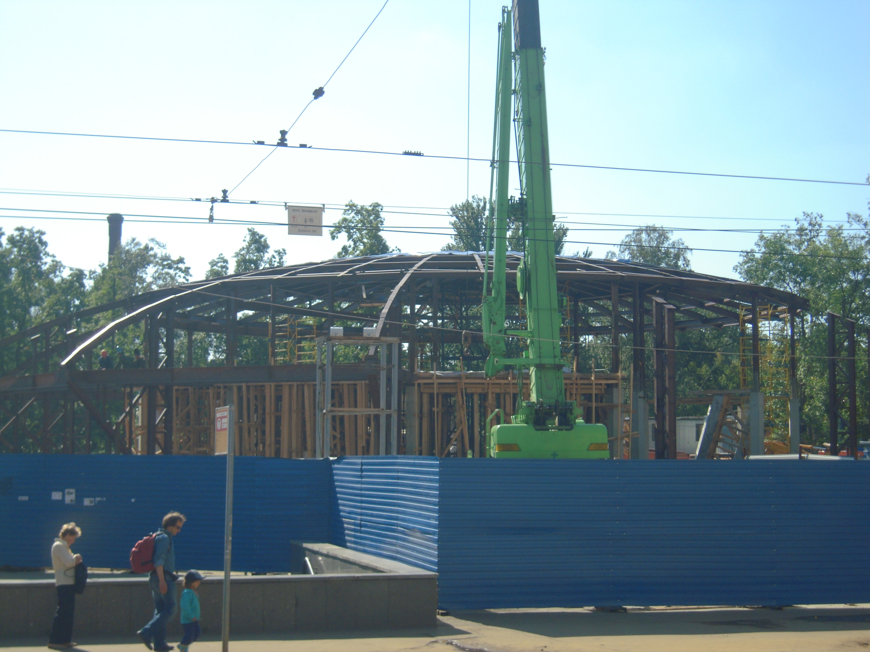 Начали появляться края "летающей тарелки", леса внутри станции - это, вероятно, второй этаж. частично готова опалубка в котловане, она будет задавать новый внешний радиус станции