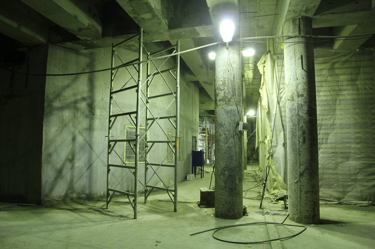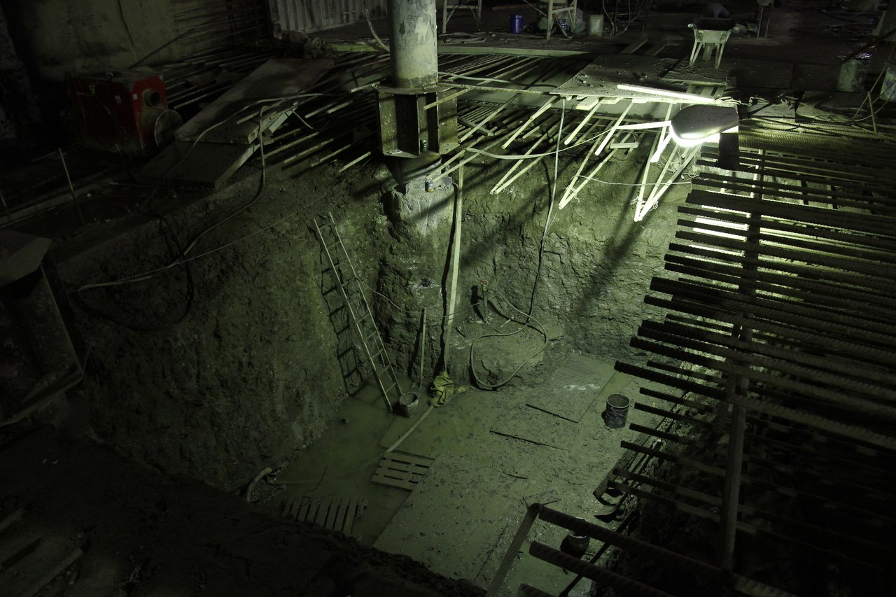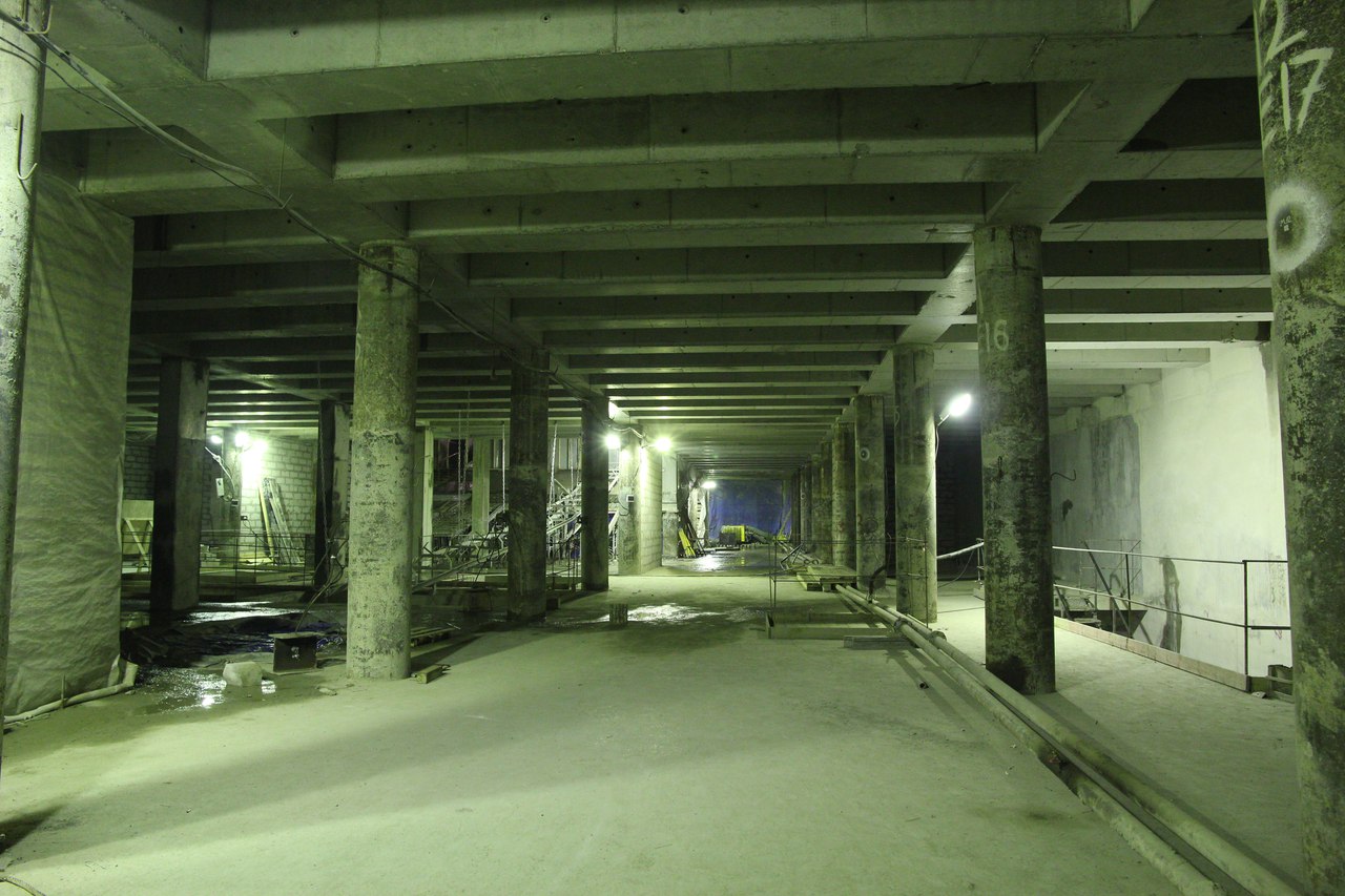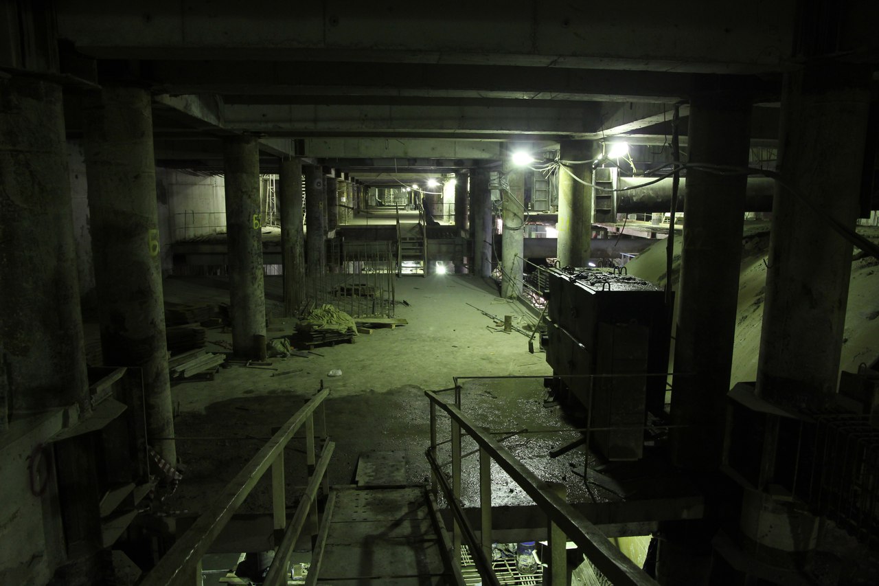 На этот раз от меня большой подробный фотоотчет со станции, снятый не на телефон. На верхнем ярусе перегородки из газобетона растут как грибы после дождя, кассы уже готовы. Лестничные сходы скоро доведут до уровня перекрытия. Ленточный конвейер пока смонтирован до уровня перекрытия +9,900 и выведен на поверхность. На среднем уровне пока никаких изменений, не считая демонтажа расстрелов для прохода ТПМК и возвращения их на прежнее место за щитом. Внизу залиты первые захватки перекрытия платформы, продолжается заливка жесткого основания. В середине станции ведется разработка грунта под зумпф. Последнюю заходку лотка залили совсем недавно, видимо не стали торопиться пока щит встал. Грунт в пространстве между осями А-Б и Е-Ж полностью пока не выбран. Фотографии с ТПМК и с перегонным тоннелем смотрите в теме НВЛ, в один пост все не поместилось