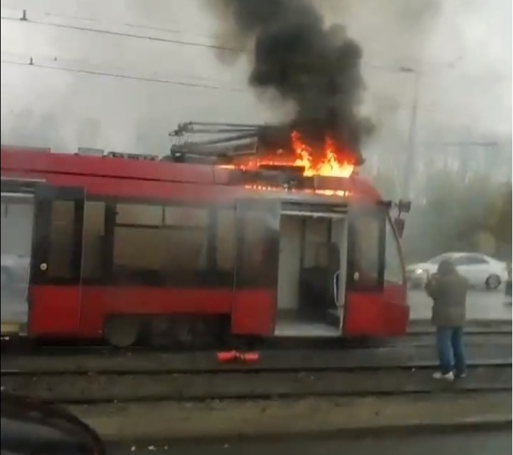 В Казани сгорел трамвай БКМ 84300М. Построенный в 2013 году. Заводской № 13. Источник: http://transphoto.ru/vehicle/312904
