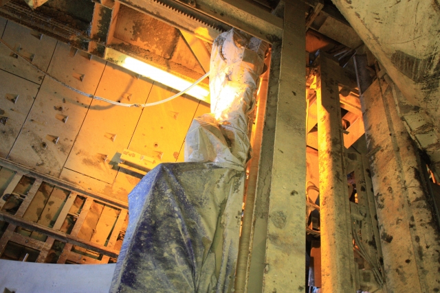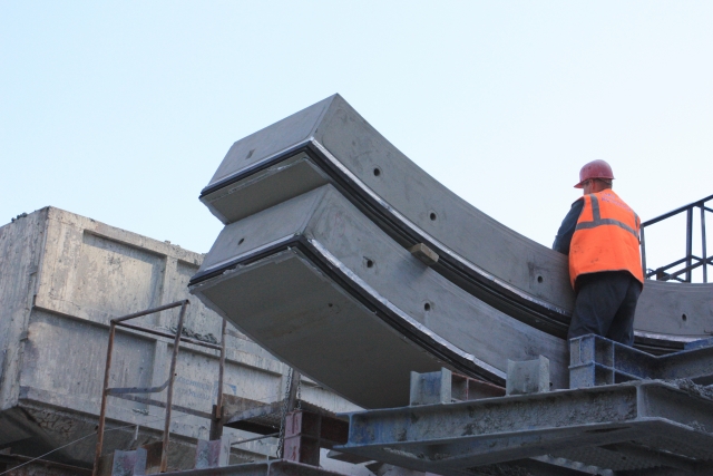 "Спасская" на 20 метров ближе к поверхности, чем "Адмиралтейская", длина наклонного тоннеля - 88 колец, то есть примерно столько же метров. Каждое кольцо состоит из восьми железобетонных секций. Каждая секция весит от трех до пяти тонн. Кран загружает очередной блок в тоннель, а "Аврора" облицовывает этими блоками стены, как туалет - кафельной плиткой. Осталось 8 колец.