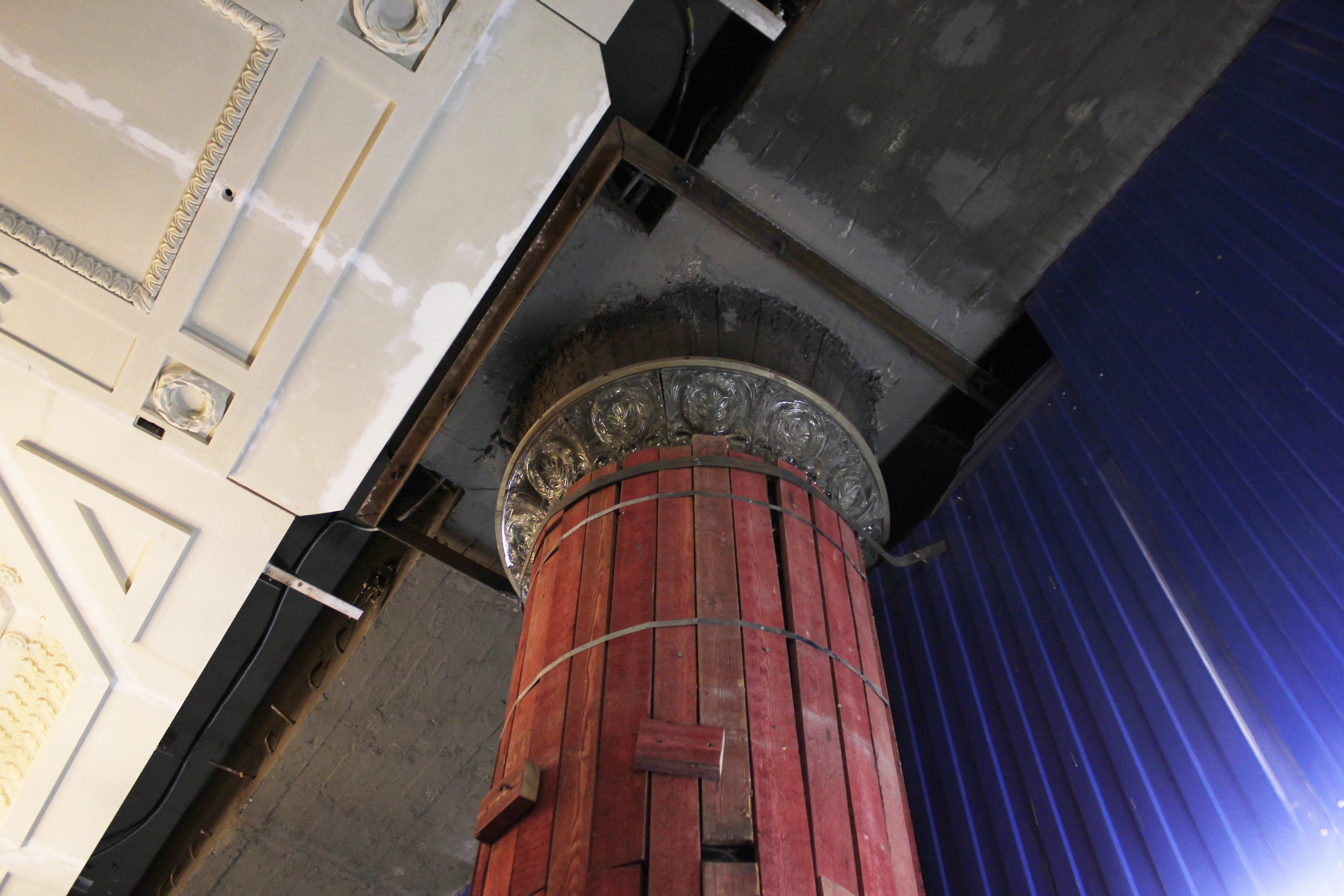 ЗЫ: для тех, кто не помнит, архитектурную отделку колонн условно можно разделить на пять участков: мрамор - стекло - мрамор - стекло - мрамор.