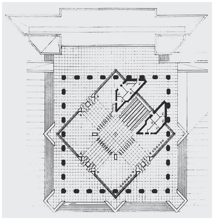 Кстати, какой был диаметр центрального зала до изменения проекта? Есть просто сомнения, что он тогда предполагался таким же тесным, да и проходы уж больно длинные…