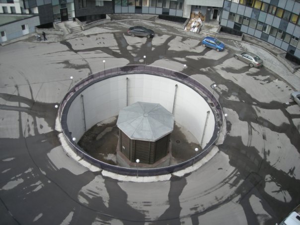 Как ремонтировать, правда, не совсем понятно. Верю, что доступ туда есть с парковки, которая расположена под этим "двором". Но с тельфером тут не очень-то размахнешься..