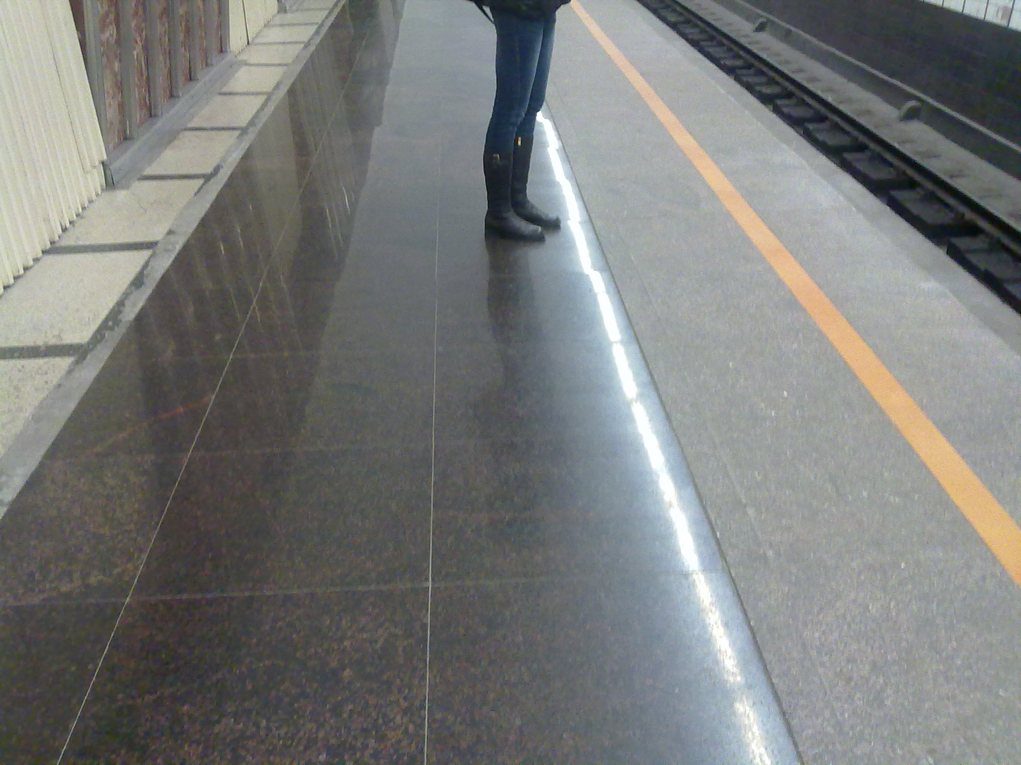 В путевом станционном туннеле в сторону центра, в середине платформы начали менять асфальт на гранит. Цвет приблизительно коричневый. Фотки нет и насчет пути в сторону Купчино не знаю.
