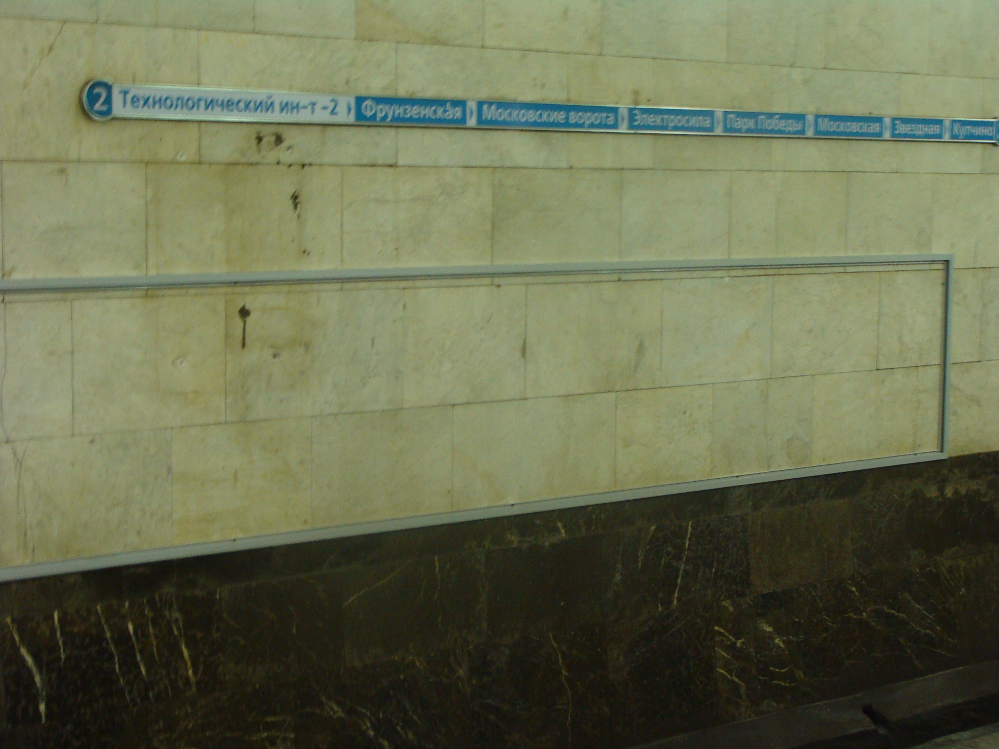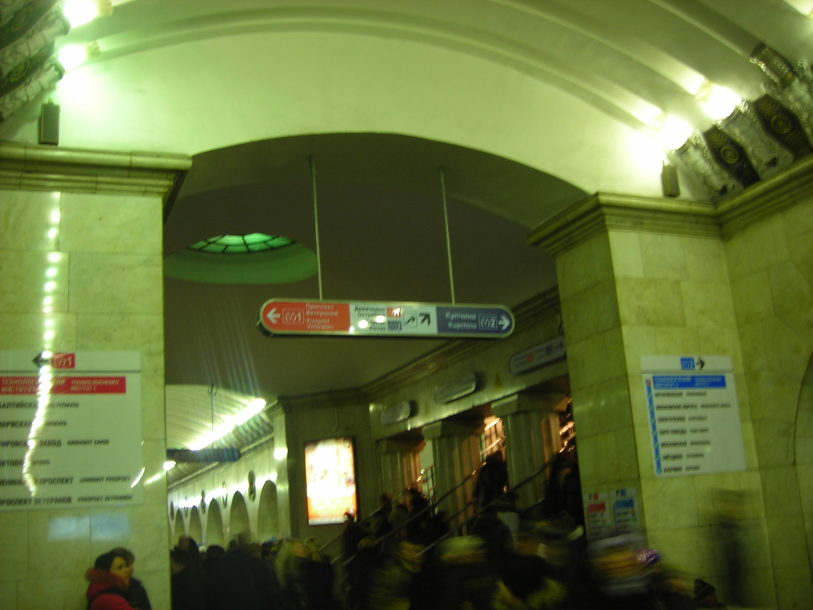 Кстати, ляп с инфососом стал более заметен. В одну сторону красный лайтбокс "Проспект Ветеранов", в другую — синий "Купчино", а инфосос полностью красный.