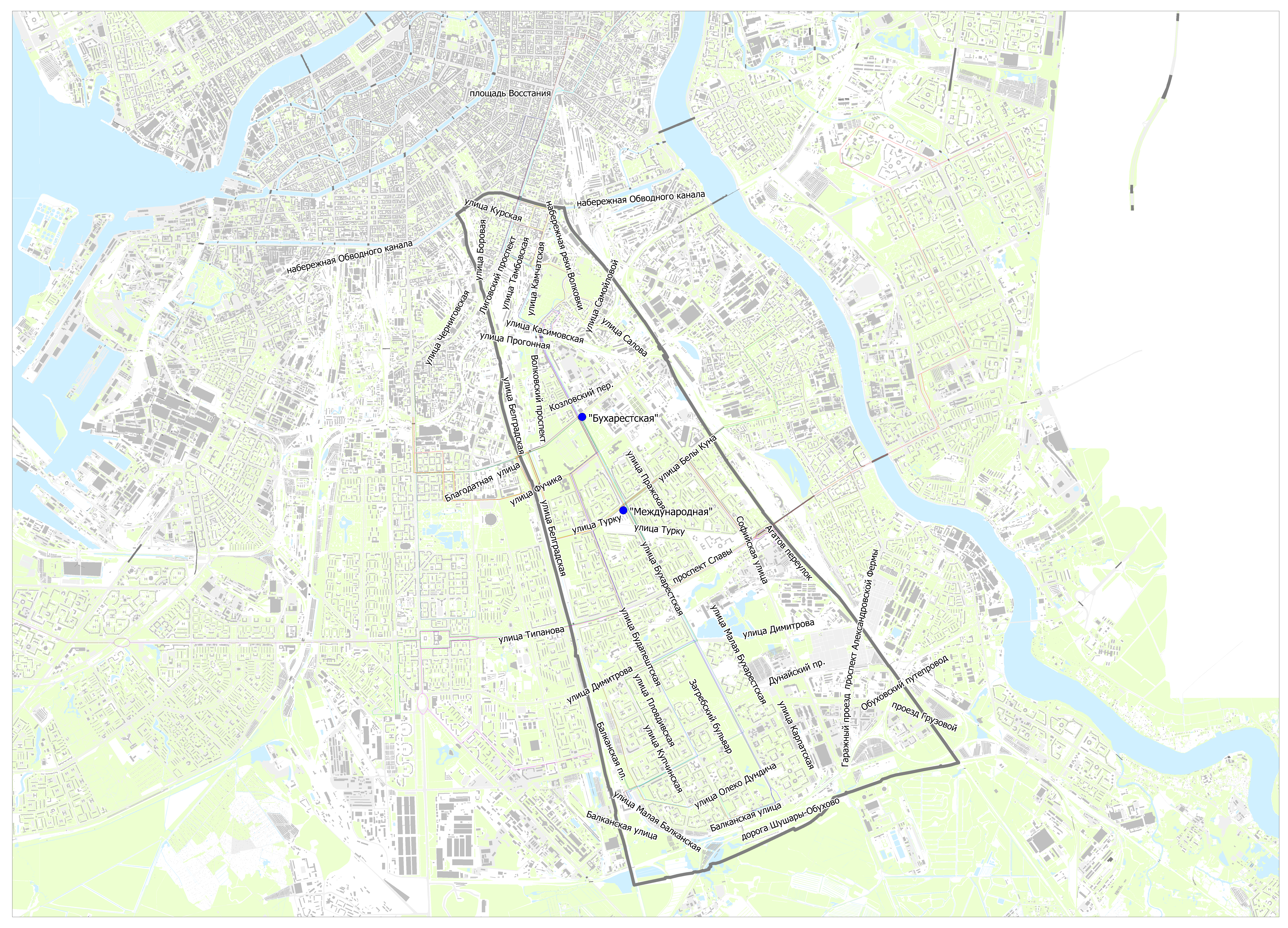 Предлагаемые схемы движения маршрутов социального транспорта к вводу в эксплуатацию станций метро "Бухарестская" и "Международная"