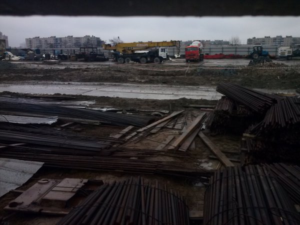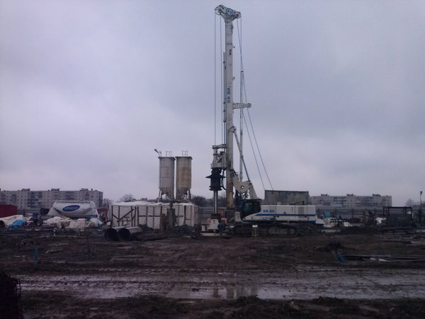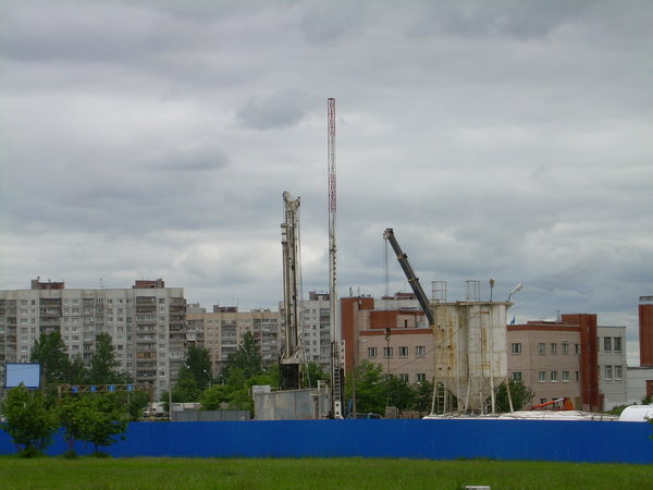 Со стороны Бухарестской за забором работал экскаватор, автокран, в ворота въезжала автобетономешалка. Работа, как показалось через ворота, идет неспешно. Бурилка похоже тоже не работала. Сооружение котлована продолжается?