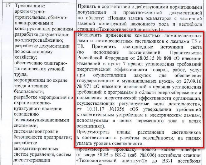 Техзадание так себе, достаточно поверхностное. Например, ТЗ по ремонту стен на Новочеркасской было очень подробным (что, впрочем, не помешало подрядчику забить на кучу существенных моментов). Тут всё хуже. По освещению пока нашёл только вот этот кусок.