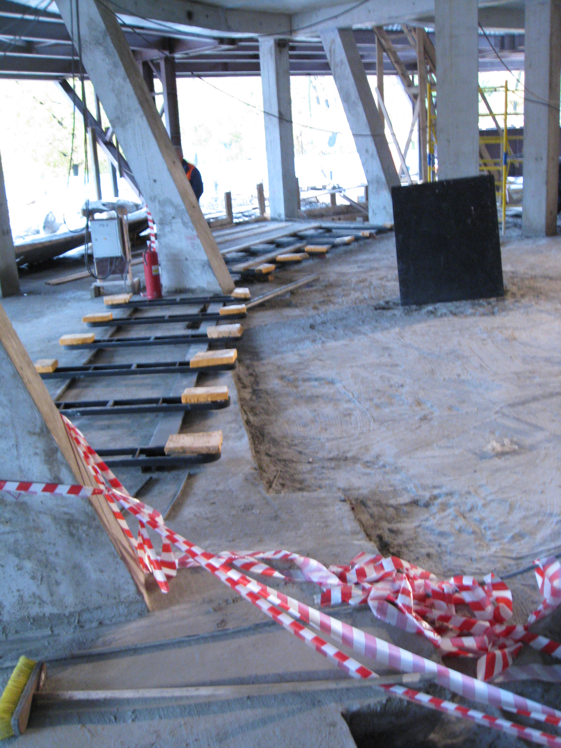 да пол разобрали полностью, и даже больше -при реконструкции наклона, был проведён ремонт пола и стен в технических помещениях, хотя там работ и нету всё это тоже раздолбали!!