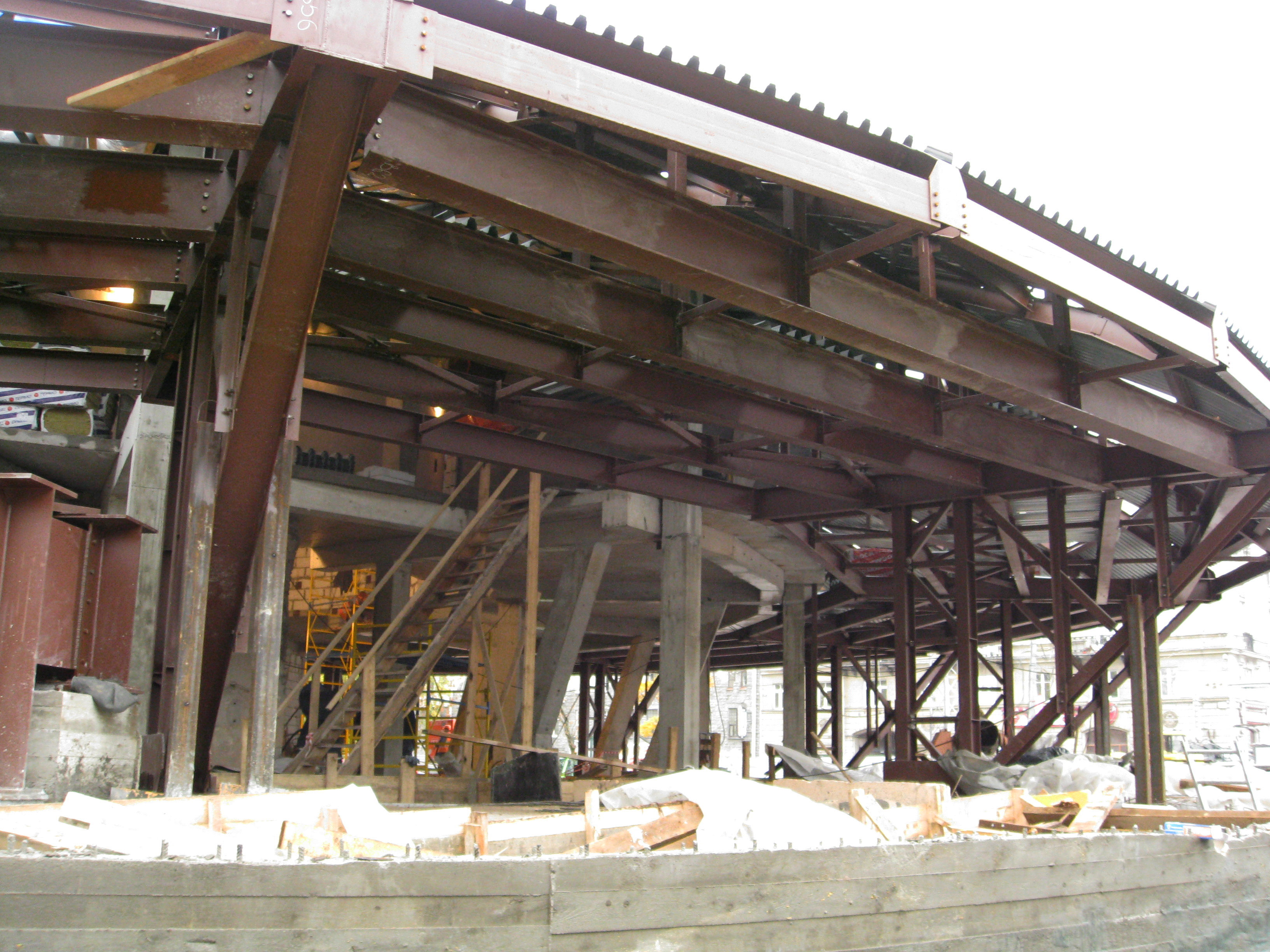 Побывал на строительстве вестибюля! Внутри: второй этаж уже практически готов в конструкциях, укладывают перекрытия для будущих кассовых помещений, установили направляющие для турникетов, скоро начнется отделка; снаружи: заливают перекрытия под пешеходную зону и технические помещения, установили ступеньки и занимаются утеплением купола! Внутри вестибюль стал намного больше, там стало как то слишком свободно!