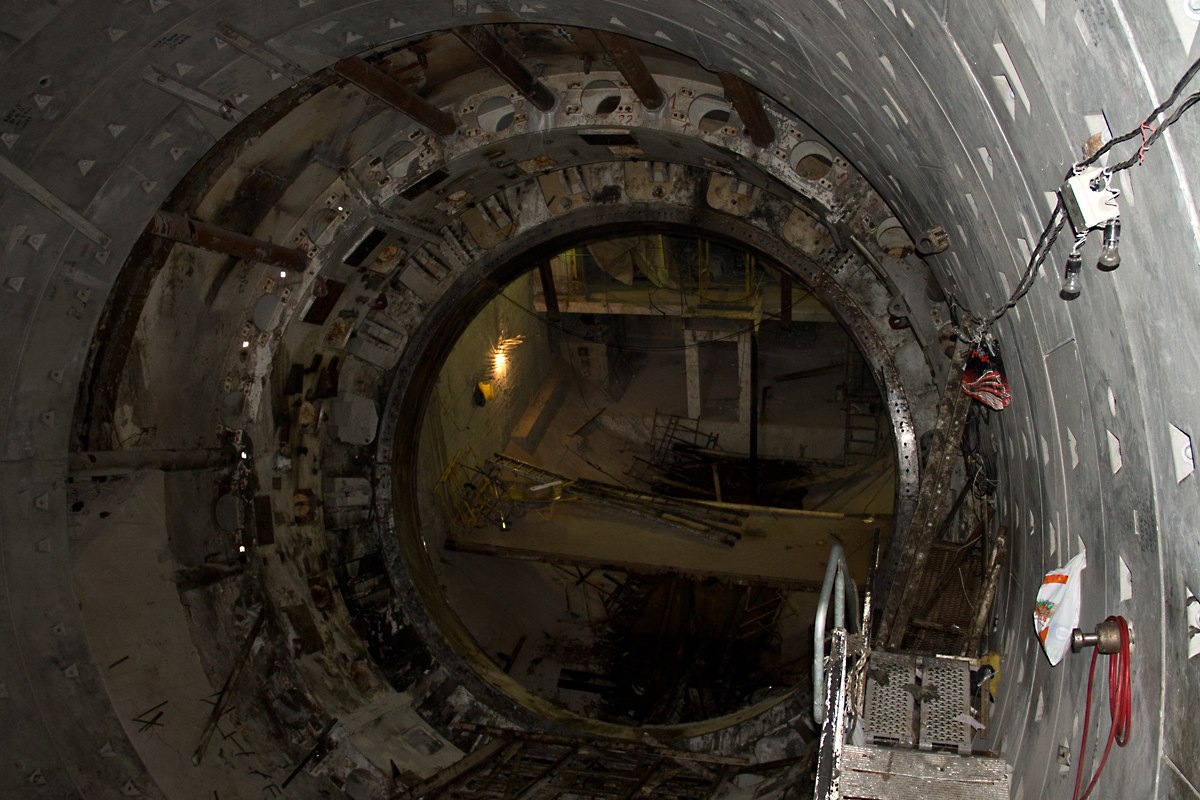 Кое-где забито шпунтовое ограждение, начата разработка котлована под здание вестибюля. В целом всё.