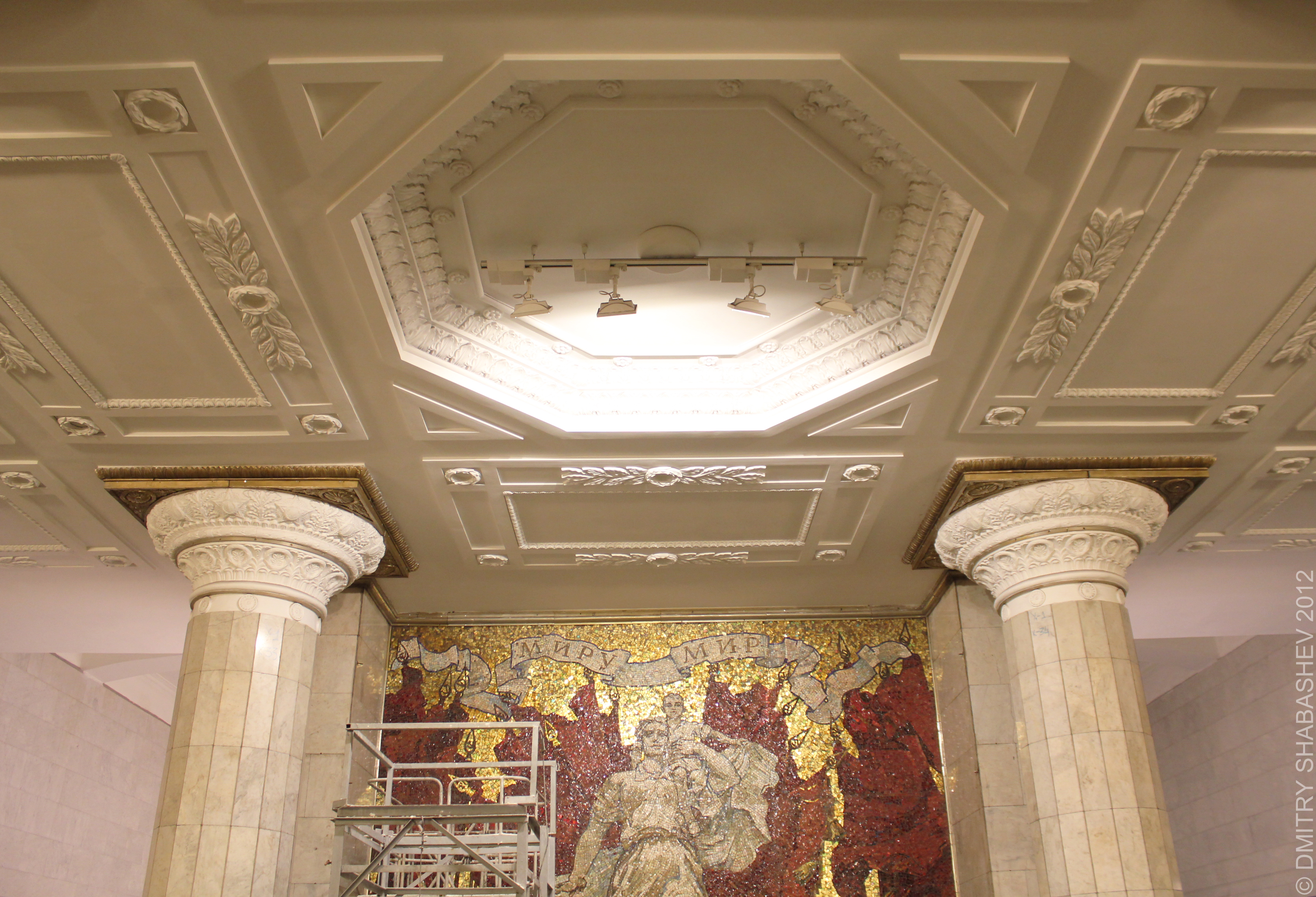 Также потихоньку ремонтируют пол. Под "ремонтом" подразумевается замена повреждённых в процессе ремонта потолка и колонн напольных плиток на новые. Цветовая гамма соблюдена, однако новые плитки пока ещё довольно сильно выделяются на фоне "потёртых" старых.