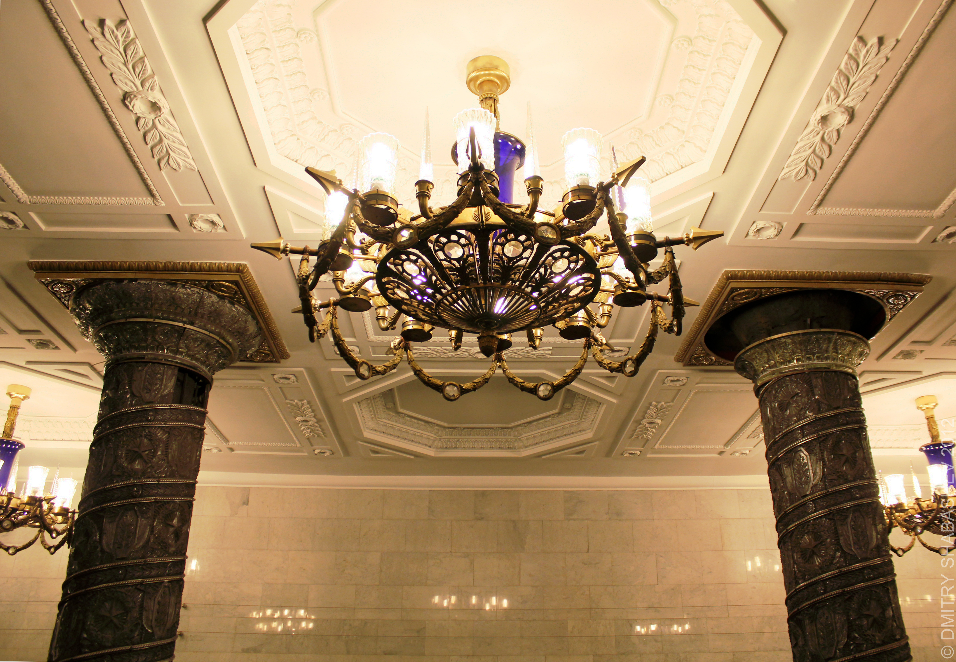 Ну, не такие уж они и компактные - их высота почти что равна высоте плафонов. В плафонах люстр, которые расположены ближе к панно, ставят аналогичные, заменяя ими действительно компактные люминесцентные лампы (их, впрочем, и сейчас можно увидеть в нескольких люстрах со снятыми плафонами).