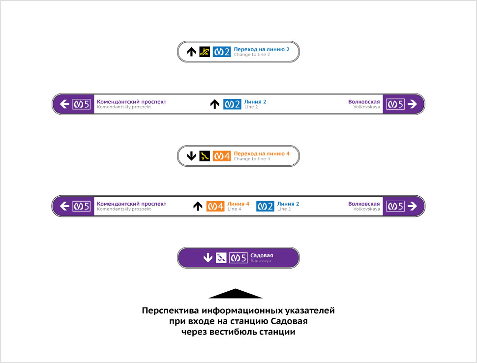 6. Пиктограммы предупреждающие пассажиров о лестницах, эскалаторах, травмпунктах, милилицейской будке и прочее - должны быть отделены от пиктограмм связанных с линиями, направлениями и пересадками. Причем желательно, чтобы это отделение было не только пространственным, но и цветовым.
