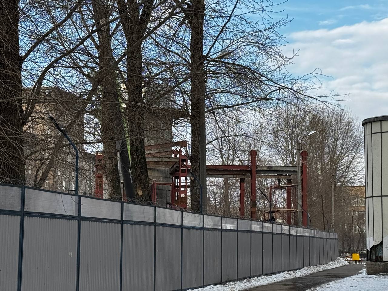На Путиловской зашили профлистом коридор [пересадки].