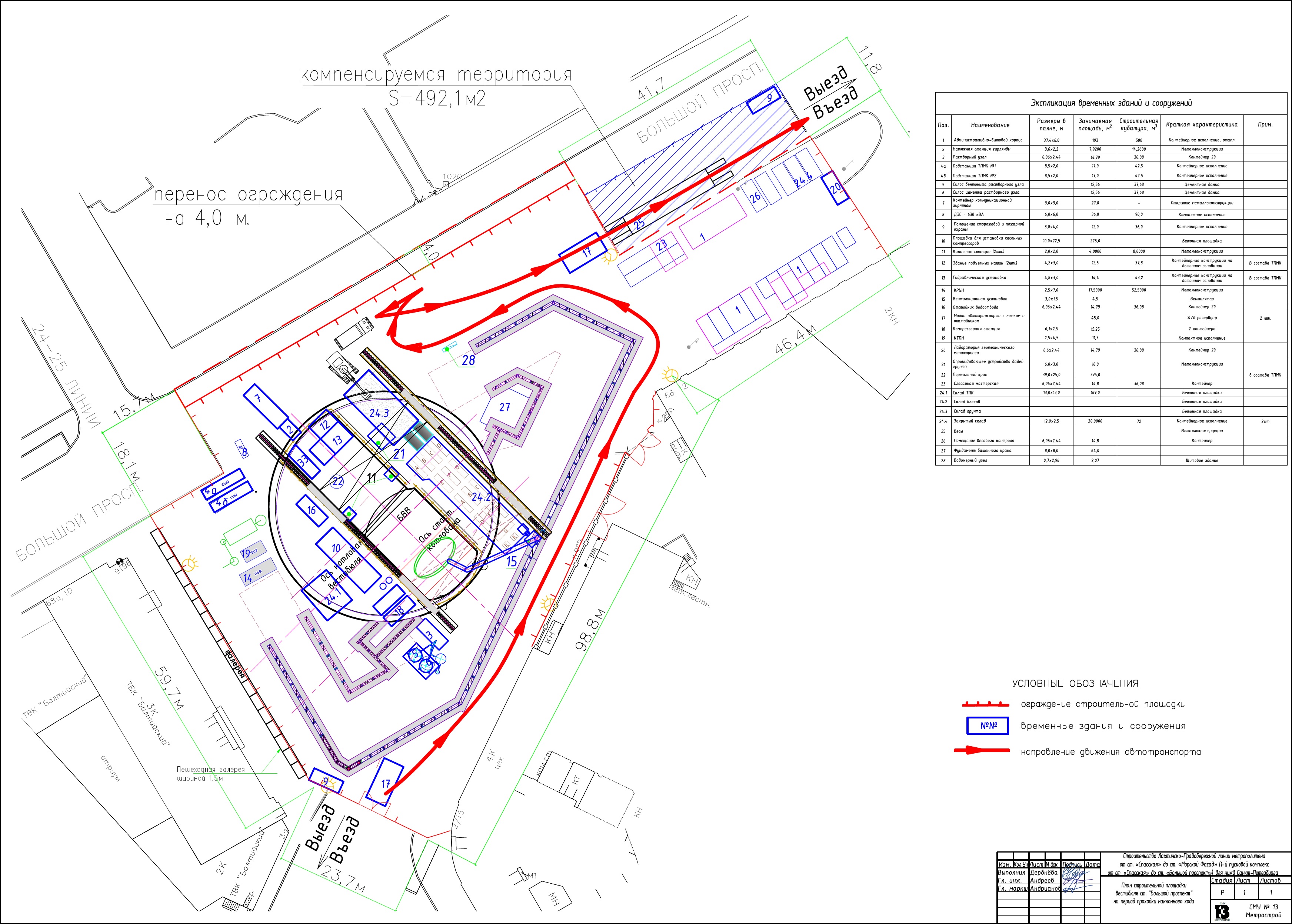 С сайта ГАТИ схемы стройплощадки вестибюля станции "Большой пр.":