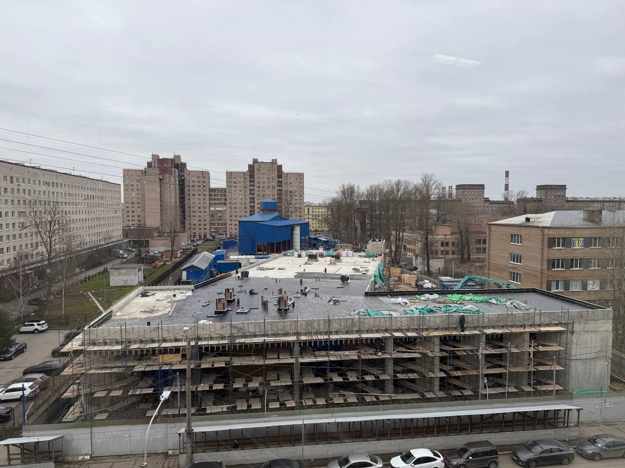 Строительство колонн для лестницы перехода на Кировском заводе.