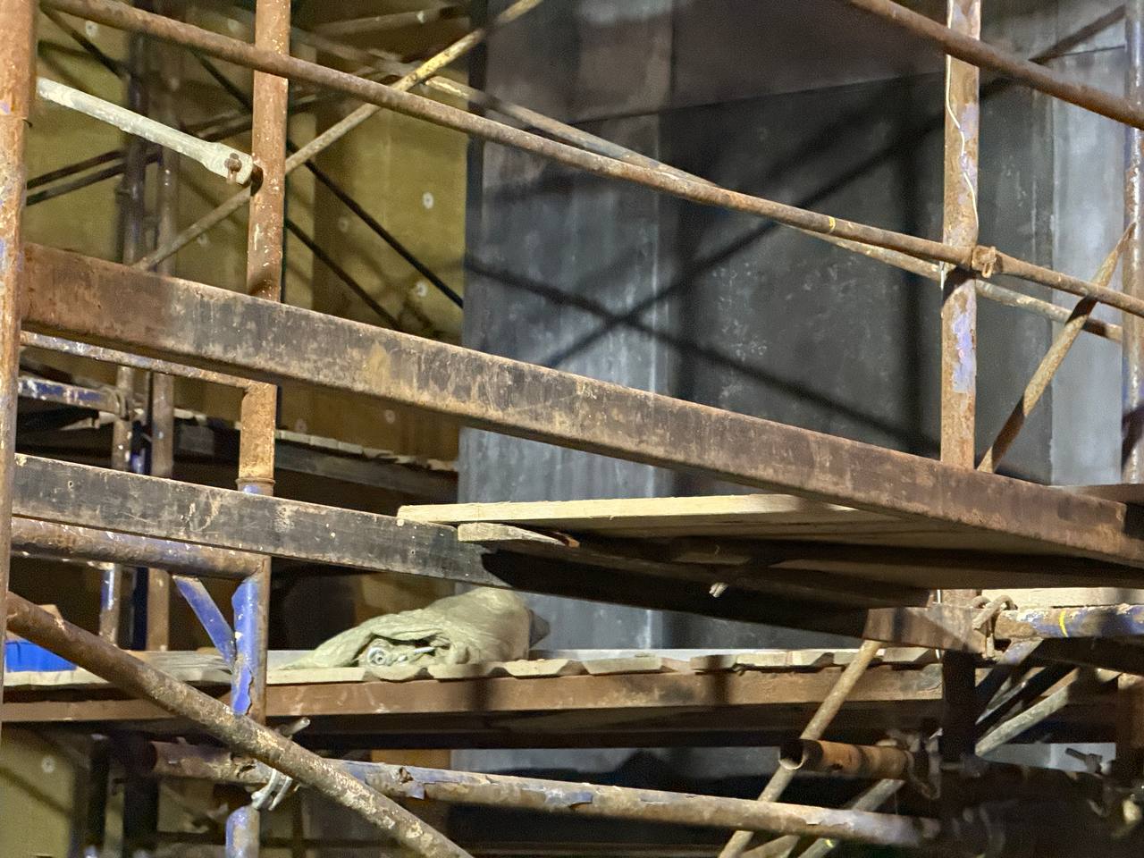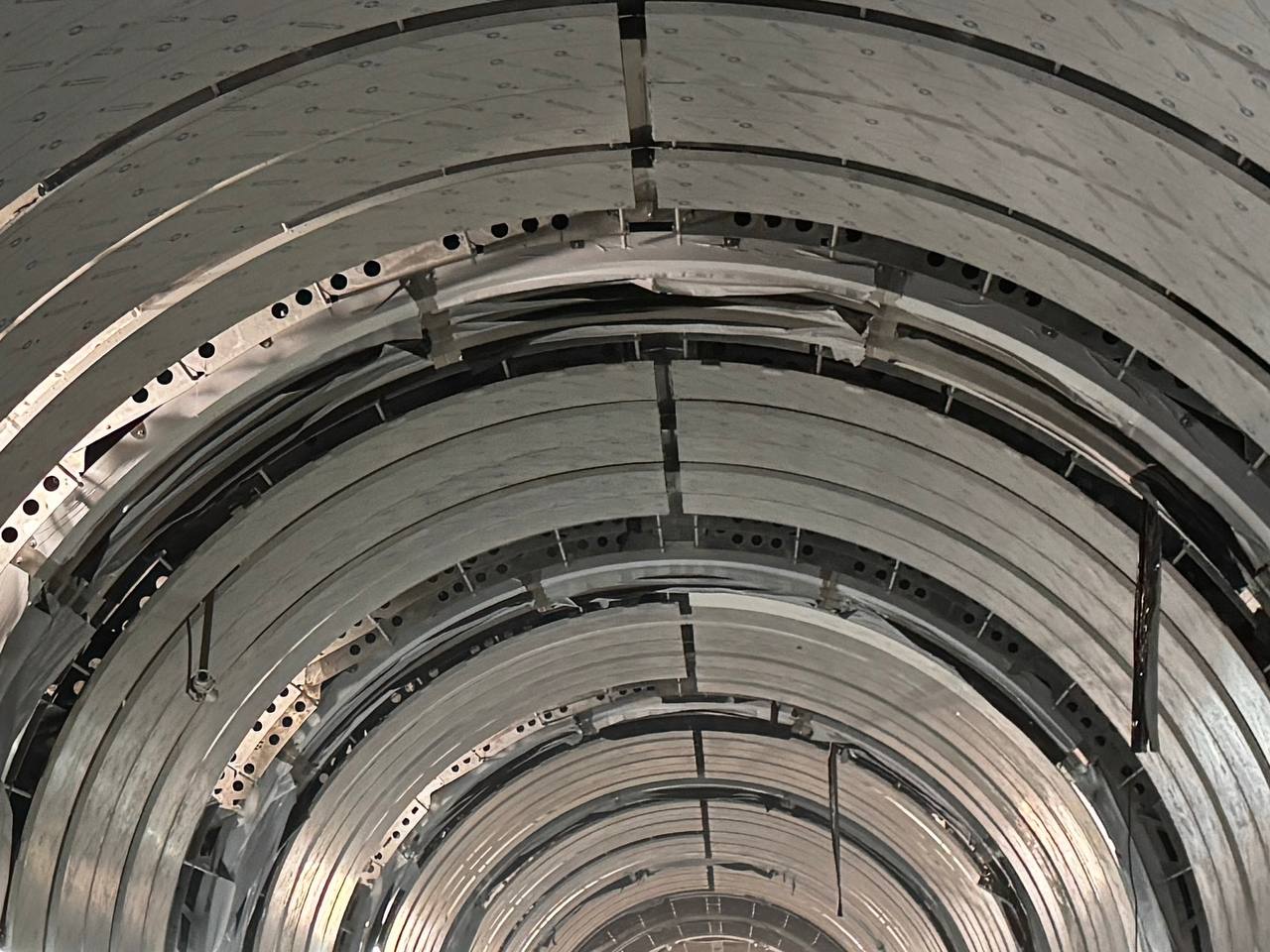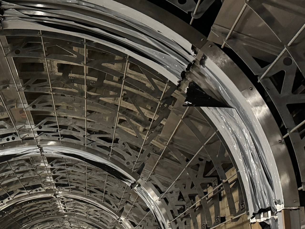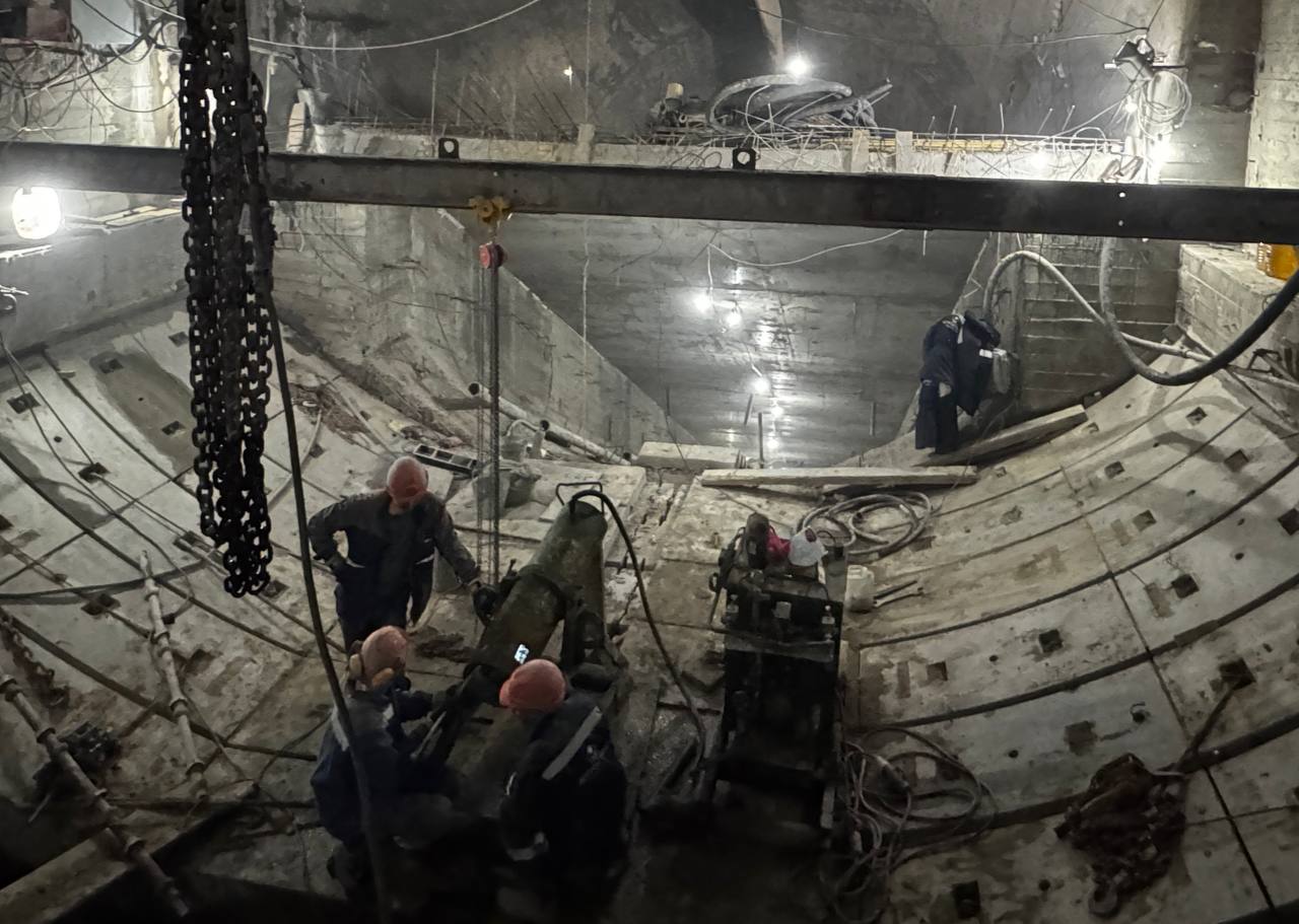 В боковых станционных тоннелях идёт монтаж элементов из нержавеющей стали.