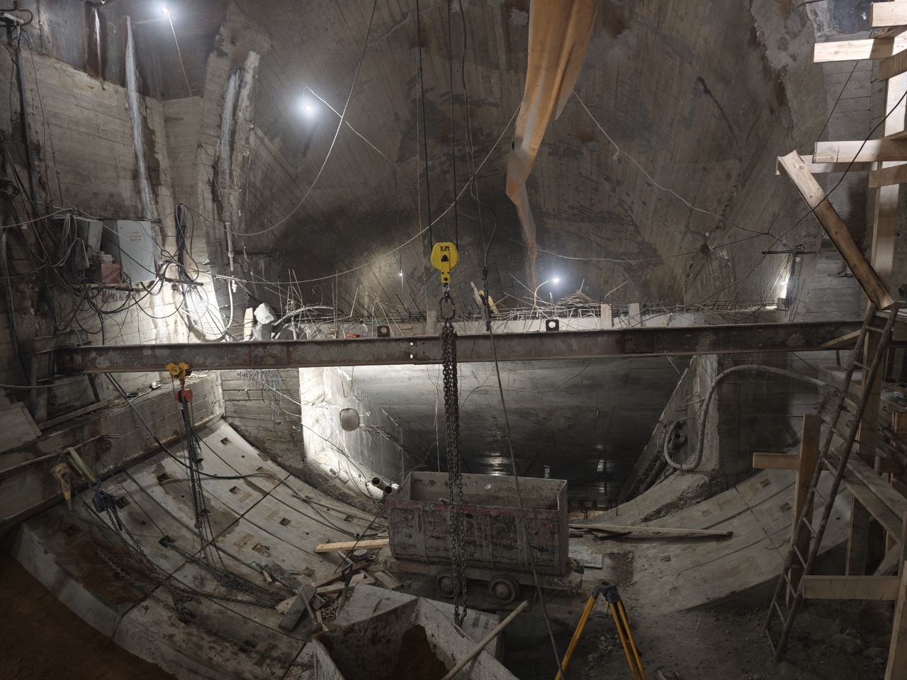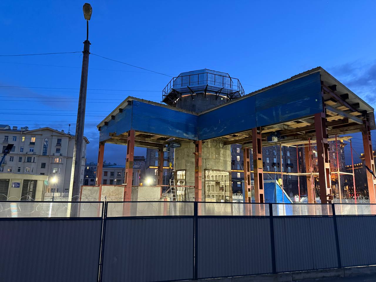На строительстве Путиловской продолжается монтаж потолочного зонта в центральном зале.