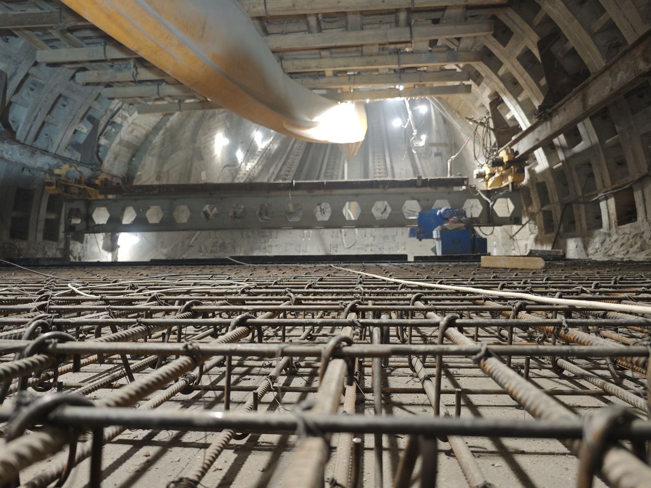 Поясню для тех, кто не знает, что это. Фрейссине это фамилия изобретателя домкрата такого типа. Принцип работы домкрата заключается в том, что если в плоскую металлическую банку нагнетать жидкость, то эта банка постепенно будет превращаться в шар и за счет изменения своей толщины - поднимать (или отодвигать) груз. На опубликованном фото домкраты Фрейссине не видны - они находятся в железобетонном замке, расположенном в нижней части обратного свода. Когда в домкраты нагнетается жидкий раствор расширяющегося цемента, домкрат увеличивается в объёме, замок лопается (это предусмотрено технологией) и правая и левая части обратного свода обжимаются на породу. Образовавшийся по линии разлома замка зазор заполняется расширяющимся цементом и получается законченная конструкция обратного свода. Аналогичная технология применяется на проходке верхних и обратных сводов односводчатых и колонных станций в Санкт-Петербурге. (в40).