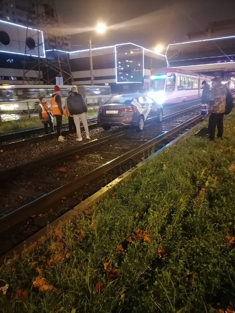 Снова, очередной дебил заблокировал движение трамваев, срезая пробку по трамвайным путям. Ещё и каршеринг. Тьфу, ,kzlm...
