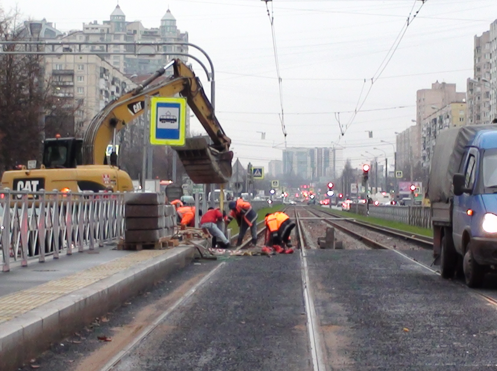 Энгельса. Напротив м. пр. Просвещения. Блин, всё лето копали. Сегодня опять экскаватор и что-то роют...Ё-моё. Почему всё не сделали разом, летом?