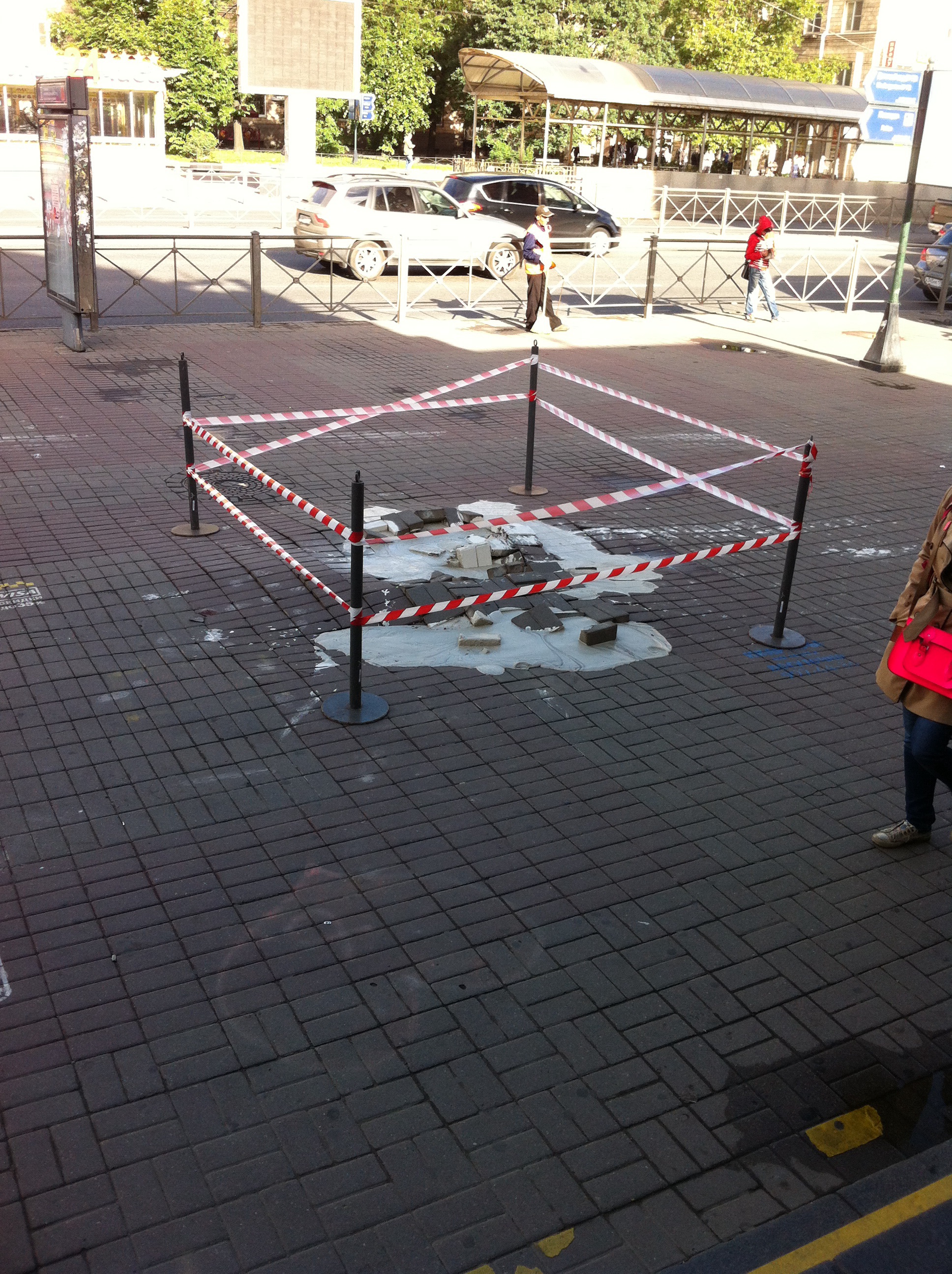 Вечером тротуар уже привели в порядок