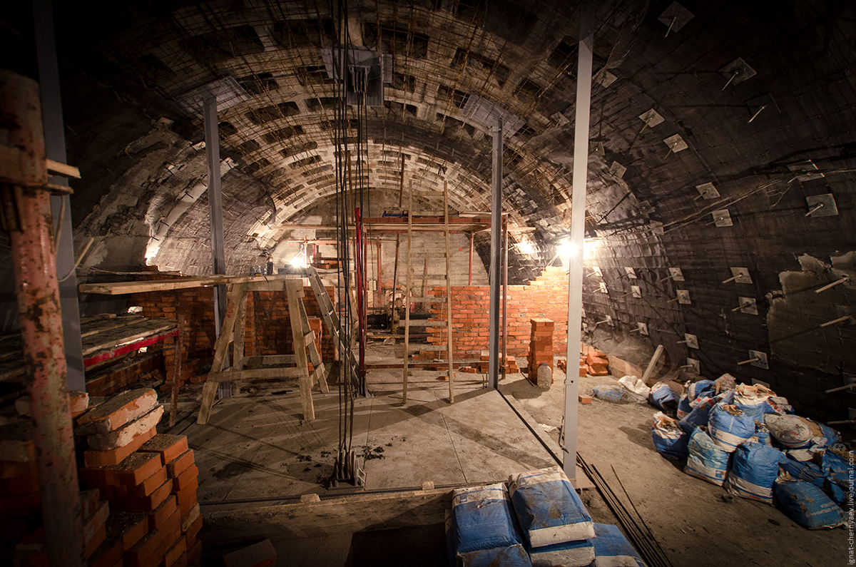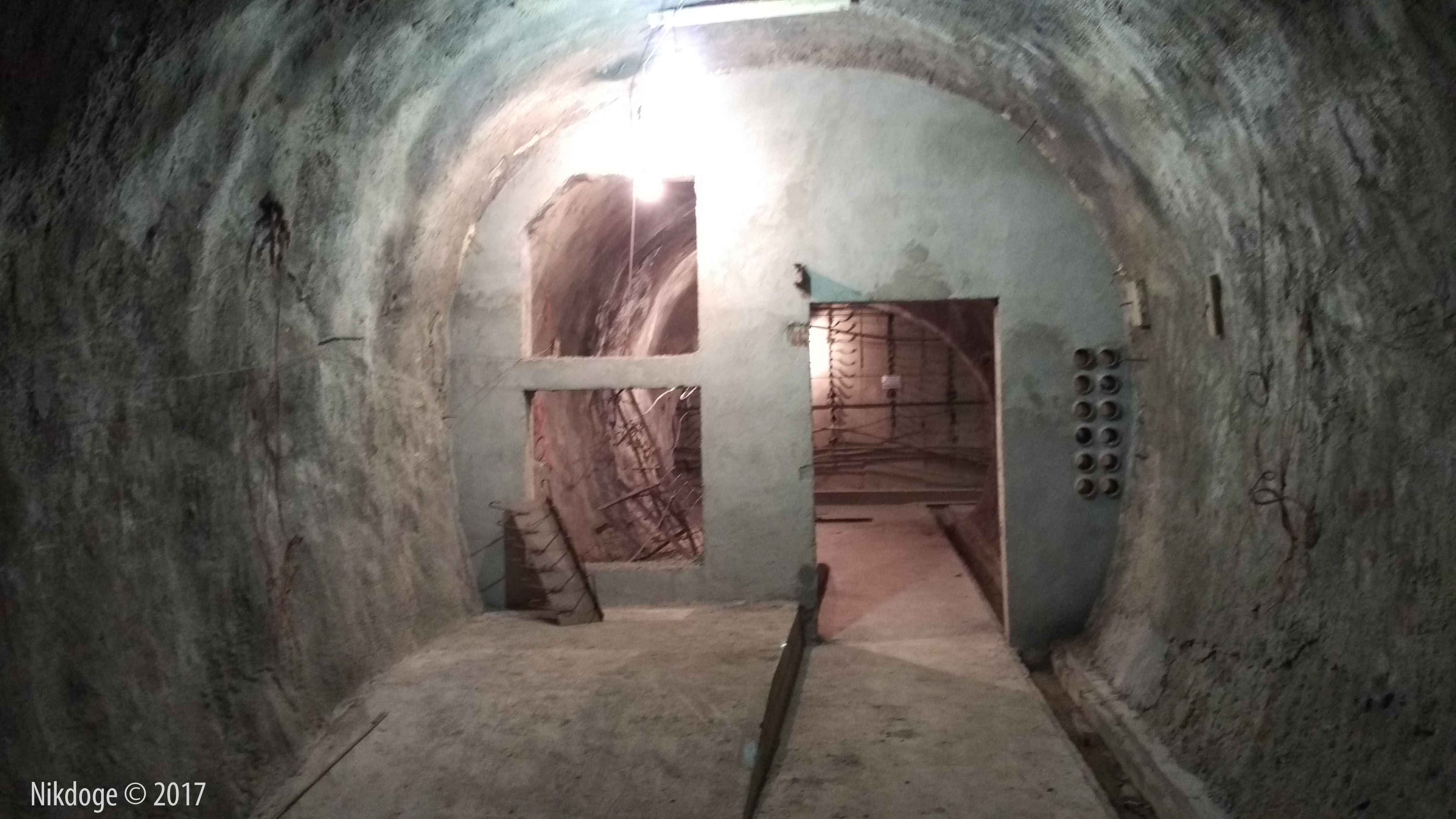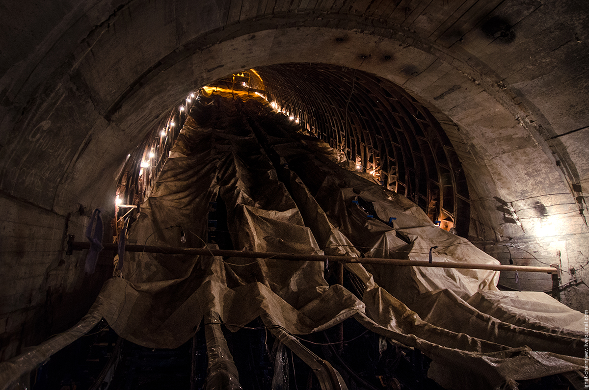 2. Облицовка есть только на путевой стене в левом тоннеле: