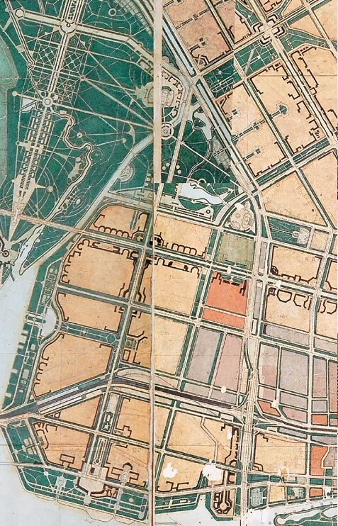 В одном из выпусков Квартального надзирателя был фрагмент Генерального плана 1987 года. Но не той версии, что выкладывал giper на spb-projects, а более качественной. И здесь можно даже разобрать перспективные трамвайные линии Северо-Приморской части и кусочка Озера Долгого