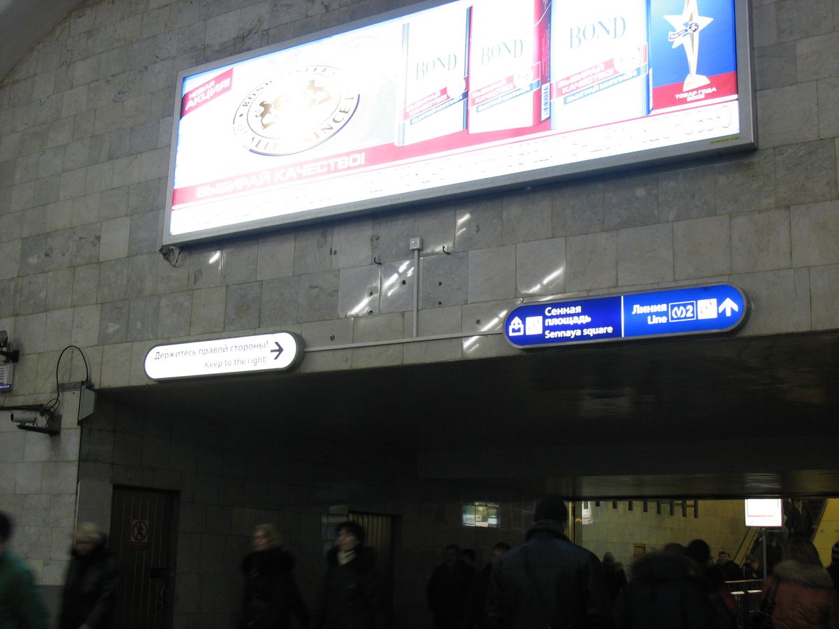 В М5/2/4 логика тоже, безусловно, есть, особенно в связи с «безвыходной» «Спасской». Только мы-то с вами прекрасно помним, что вестибюль «Сенной площади М2» находится поблизости, в одной-двух минутах ходьбы, и найти его не большая проблема. Правда, помня о навыках ниповцев по составлению схем подземных переходов — пусть уж оставят так.