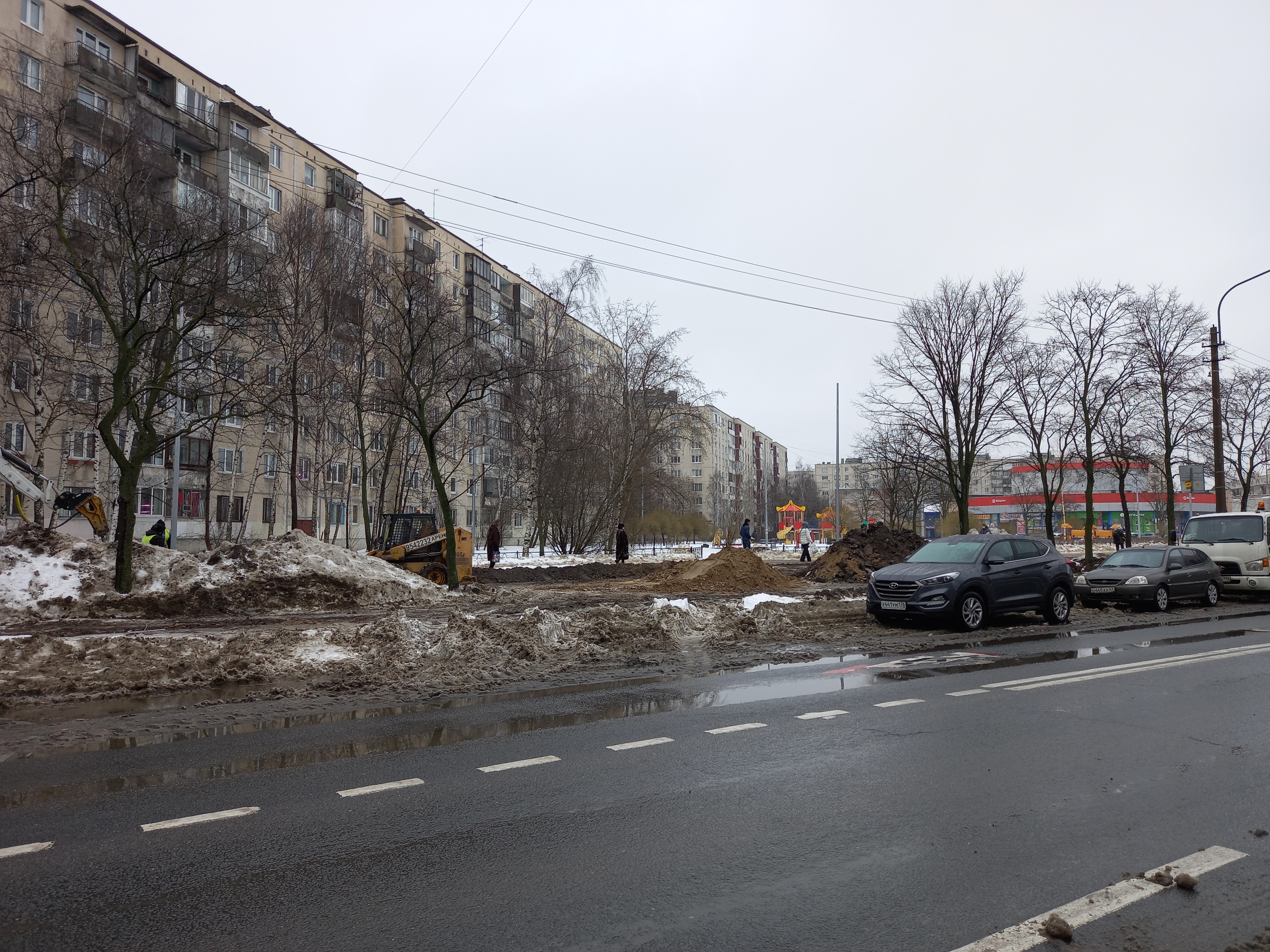 Нечётная сторона: мачты уличного и тротуарного освещения готовы от Бухарестской до Купчинской улицы.