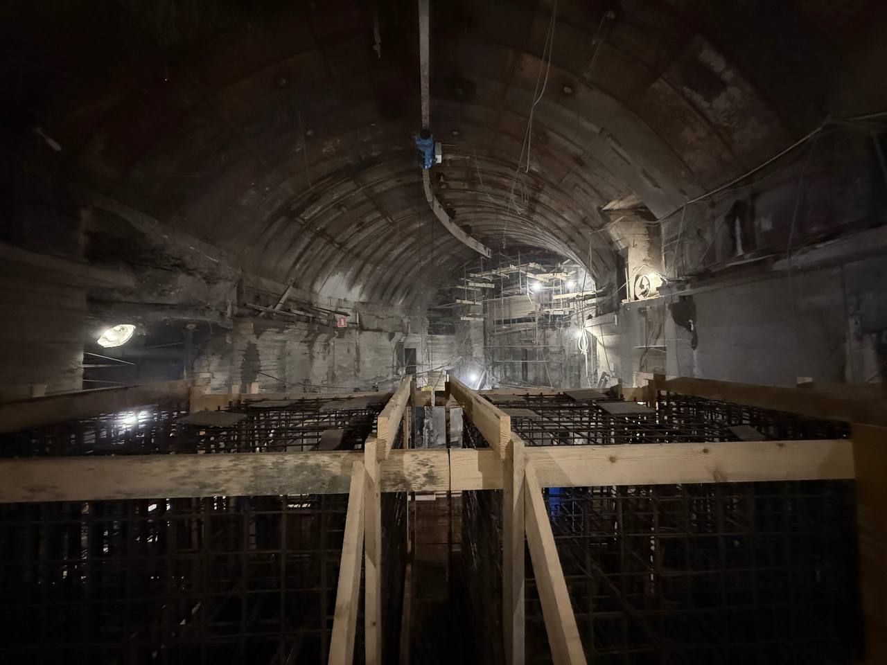 Фундаменты для машин эскалаторов, перекрытие будет выше - на уровне уступов из стены.